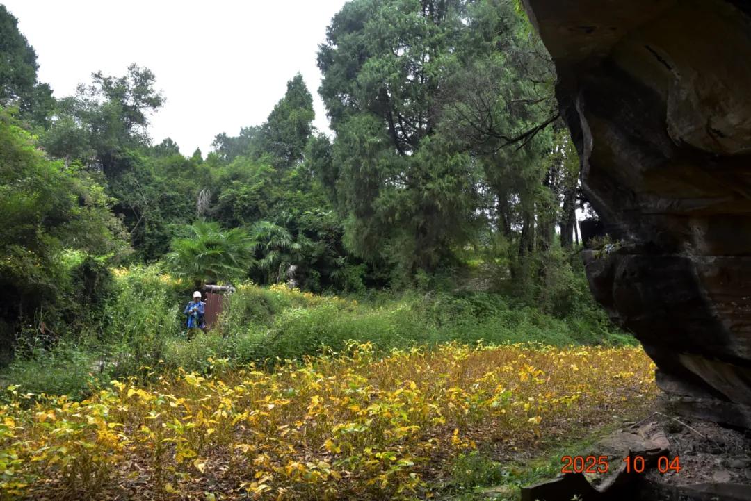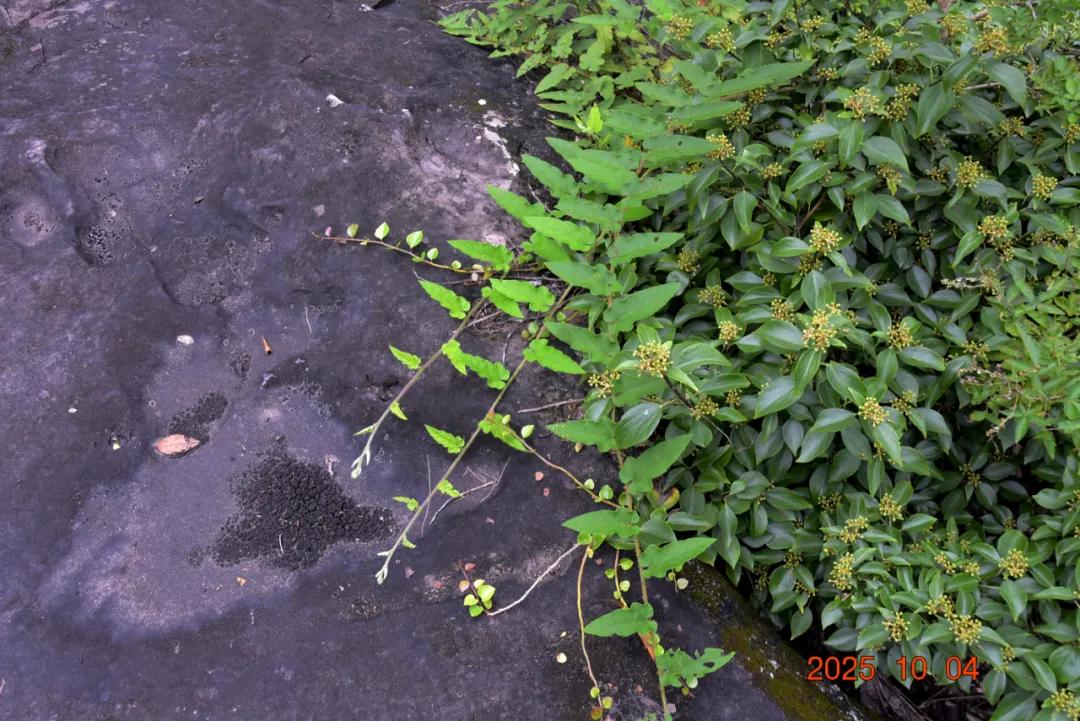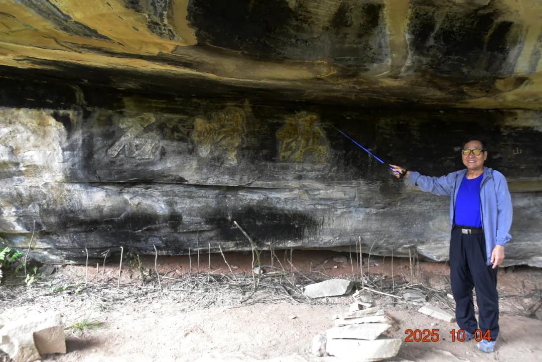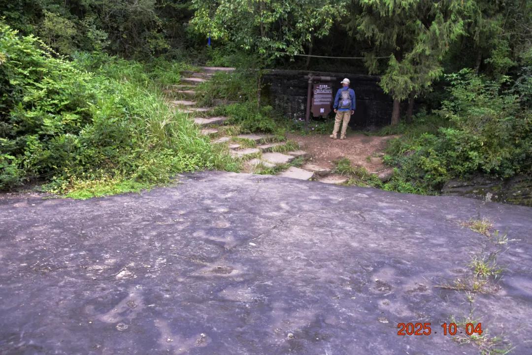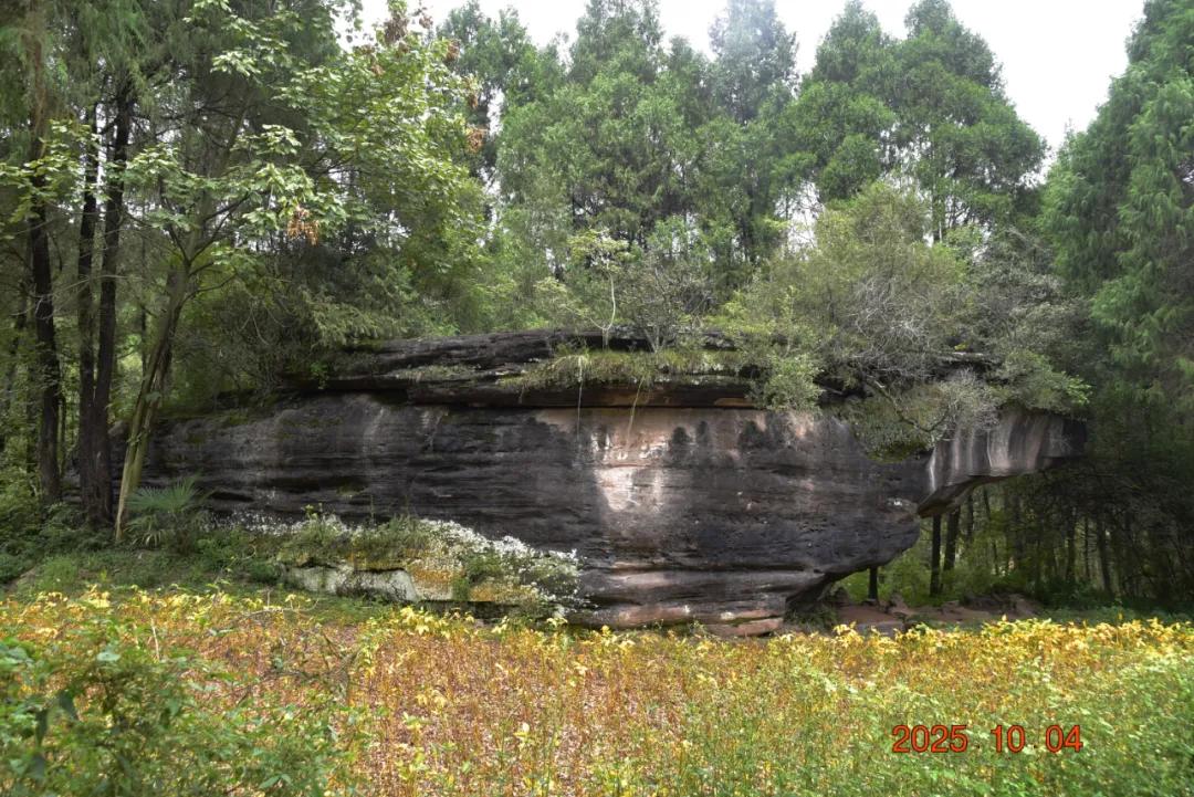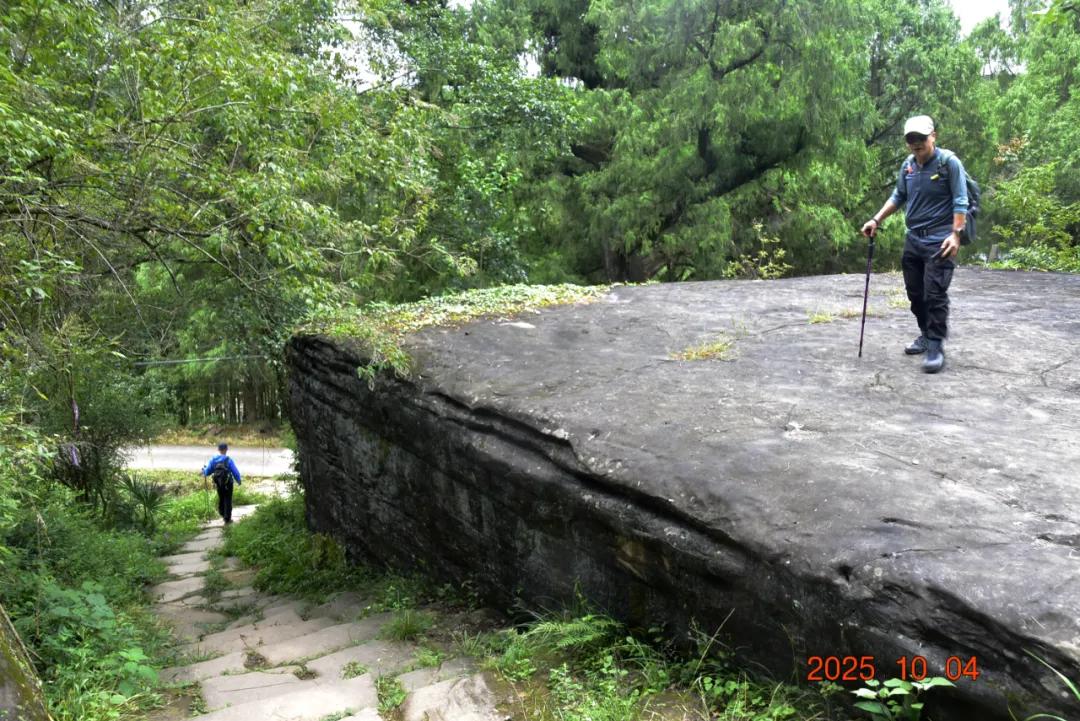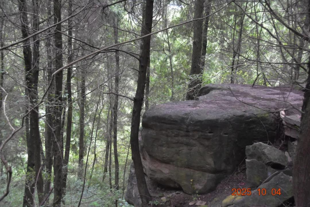 这上面有字,是什么石来?石头很大,上面很平整,下面有三分之一悬空,蜛蟆石,长24米、宽12米、高7米,远观如蹲居的蟾蜍。该石壁上有草书阳刻“蜛蟆石”三字。蜛蟆,又称蛤蟆、蟾蜍等。古人视三足蟾蜍为灵物,具有卜地旺财之神通,乃古代民间金蟾崇拜之俗。