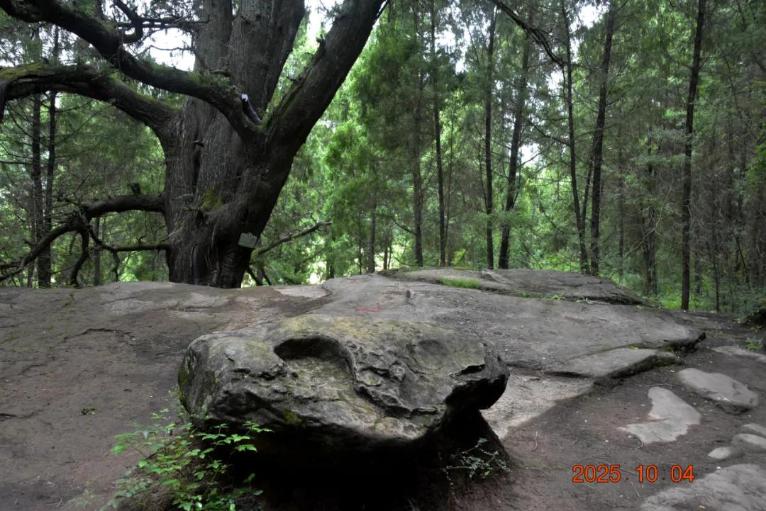 这是个施茶处,路边有棵大树,然后还有一个超大的石头,这小石头中间有坑,像是天然的茶桌。