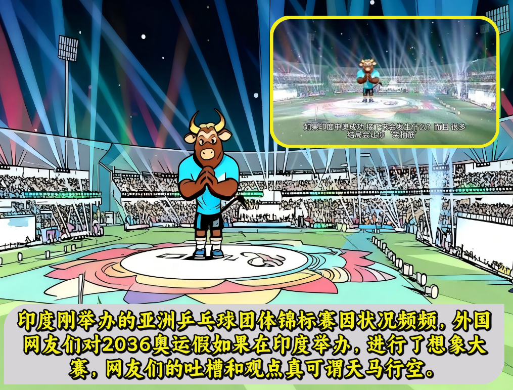印度刚举办的亚洲乒乓球团体锦标赛因状况频频,竟让外国网友们对2036奥运假如果在印度举办,进行了想象大赛,网友们的吐槽和观点真可谓天马行空。