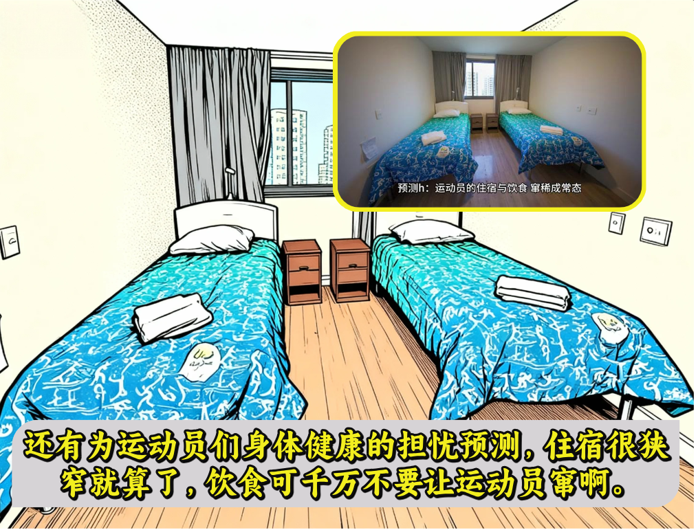 酒店房间极为狭小,两张单人床靠得极近,稍微一翻身就会碰到对方;浴室墙面霉斑明显,床单上也有清晰可见的污渍,不少队员最终选择睡在自己携带的睡袋里。