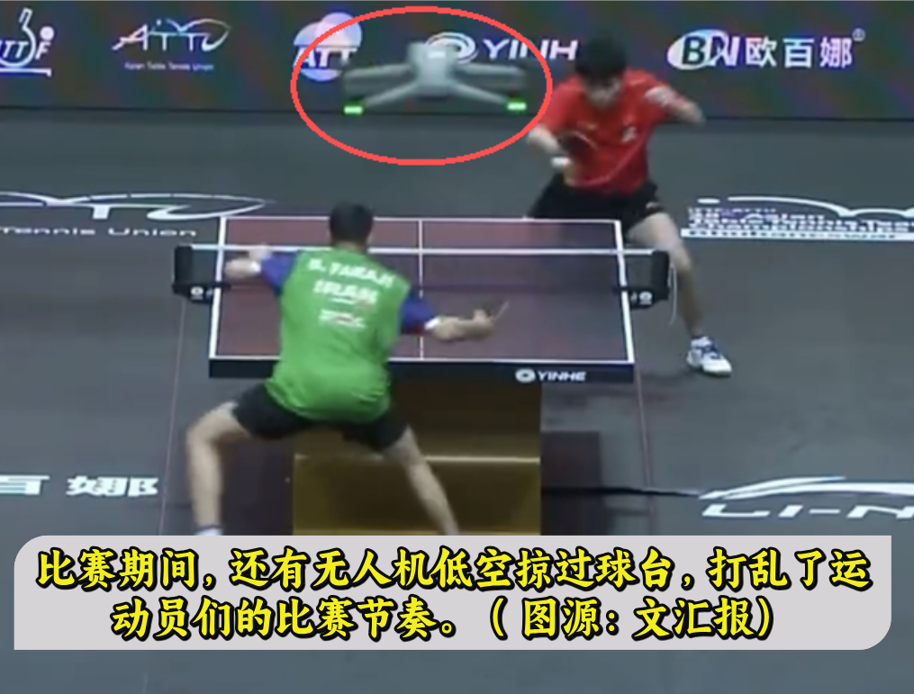 前一日林诗栋于卡林加体育馆比赛期间,有无人机低空掠过球台,打乱了运动员们的比赛节奏。