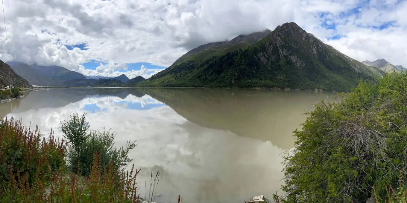 G318就沿着然乌湖一路向西,这一段时间夏季雨水多,湖水不是我们想象的那种高原湖泊的蓝色恬静,加之天空的云量变得多起来,湖水反倒看上去没有什么光亮显得浑浊,然乌的湖水还是深秋初冬时会变得清澈明亮。