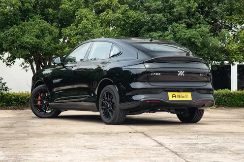 车身侧面是溜背轿跑式 SUV 造型,得益于车头设计的优化,整车姿态更显稳重大气,线条从车顶流畅滑落至车尾,兼顾了空间需求与风阻控制。隐藏式门把手是当下流行的设计,携带车钥匙靠近时会自动弹出,既具仪式感,也能降低行驶中的风阻;无边框车门则提升了车辆的档次感,打开车门时的视觉体验较为独特。