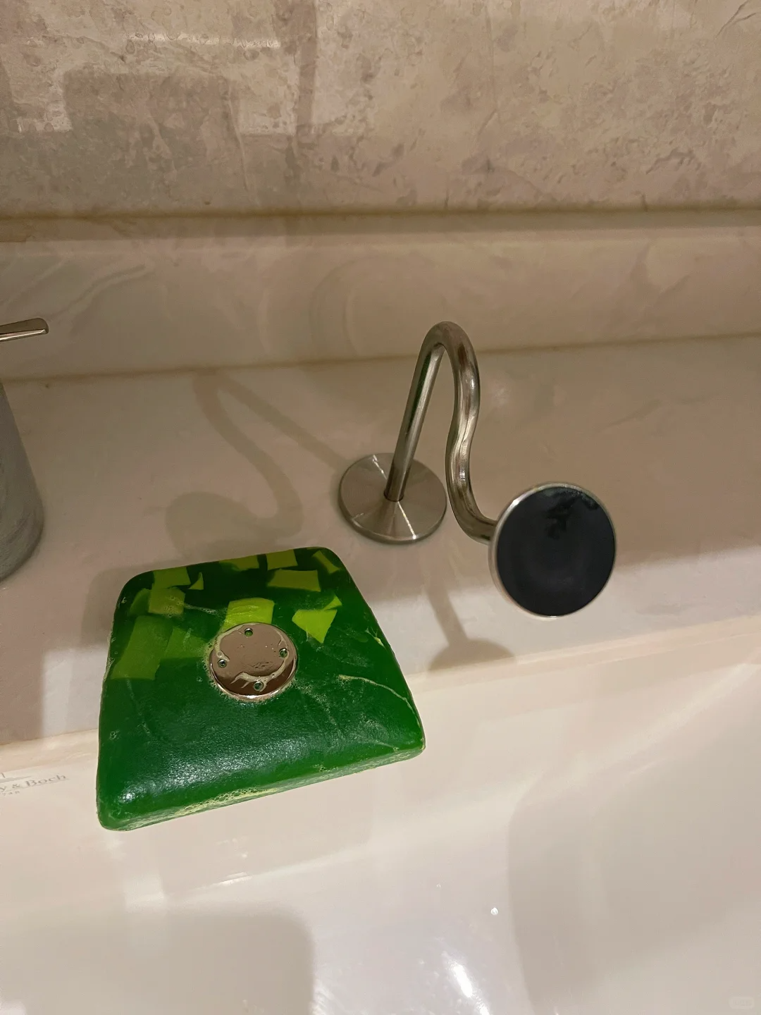 再看看不锈钢磁吸底座,脏了直接擦擦就好,把肥皂悬空收纳,满满的高级感。