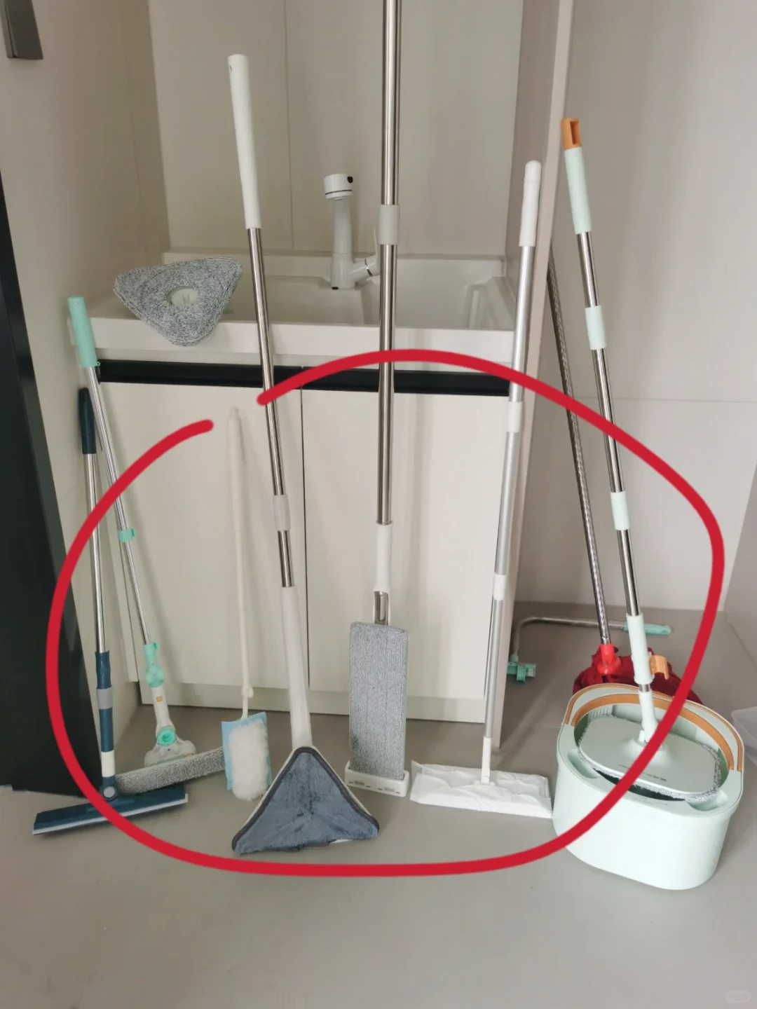 有没有和我家一样的,所有的清洁工具都在卫生间杵了一地,不仅没什么美观可言,无论是扫把,拖布,还有一股发霉的味道。
