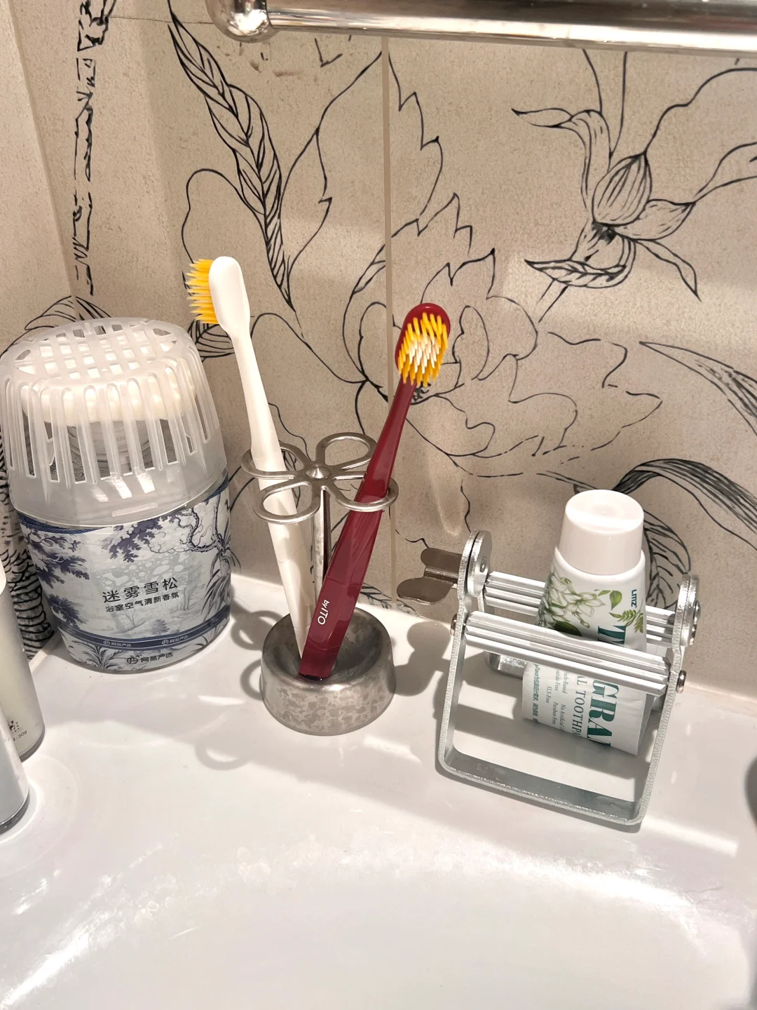 有了这个支架,感觉刷牙这件事情都变得精致了许多。而且它可以同时收纳4个牙刷,而且互不干扰。