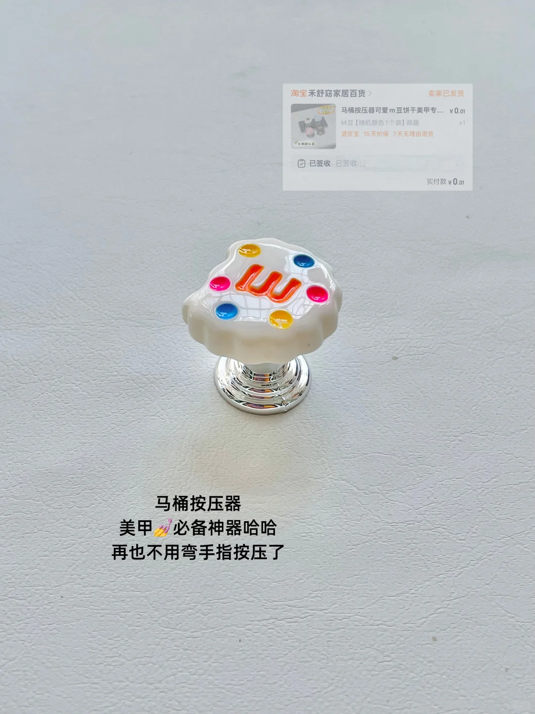 只要把它黏贴在马桶的冲水键上,就不用担心美甲的冲水难题了。它是不锈钢和仿瓷设计,不用担心被洗澡水淋湿而生锈发霉。