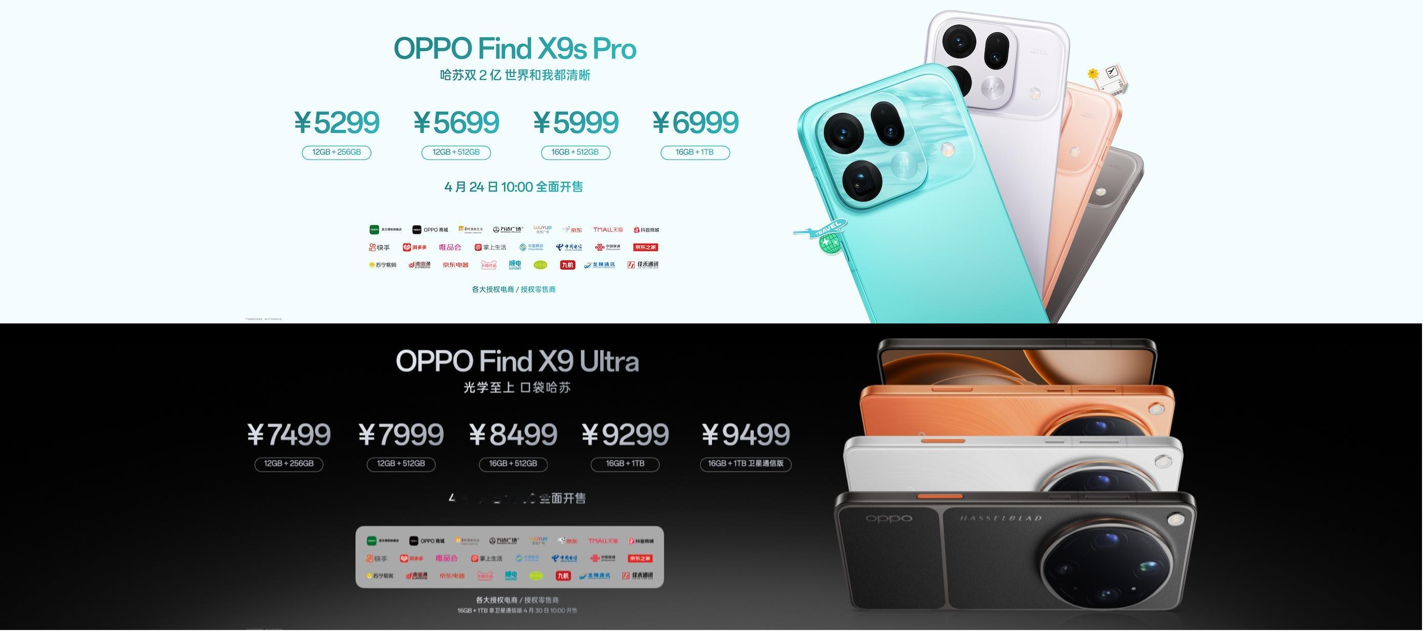 价格无疑是整场发布会的最大悬念和关注焦点,OPPO顶住上游供应链成本上涨的压力,带来极具竞争力和诚意满满的定价。其中,Find X9s Pro提供乘风青、元气橙等四款配色,售价5299元起(12GB+256GB),最高6999元(16GB+1TB);Find X9 Ultra则提供大地苔原、极地冰川等三款配色,售价7499元起(12GB+256GB),最高9499元(16GB+1TB卫星通信版)。