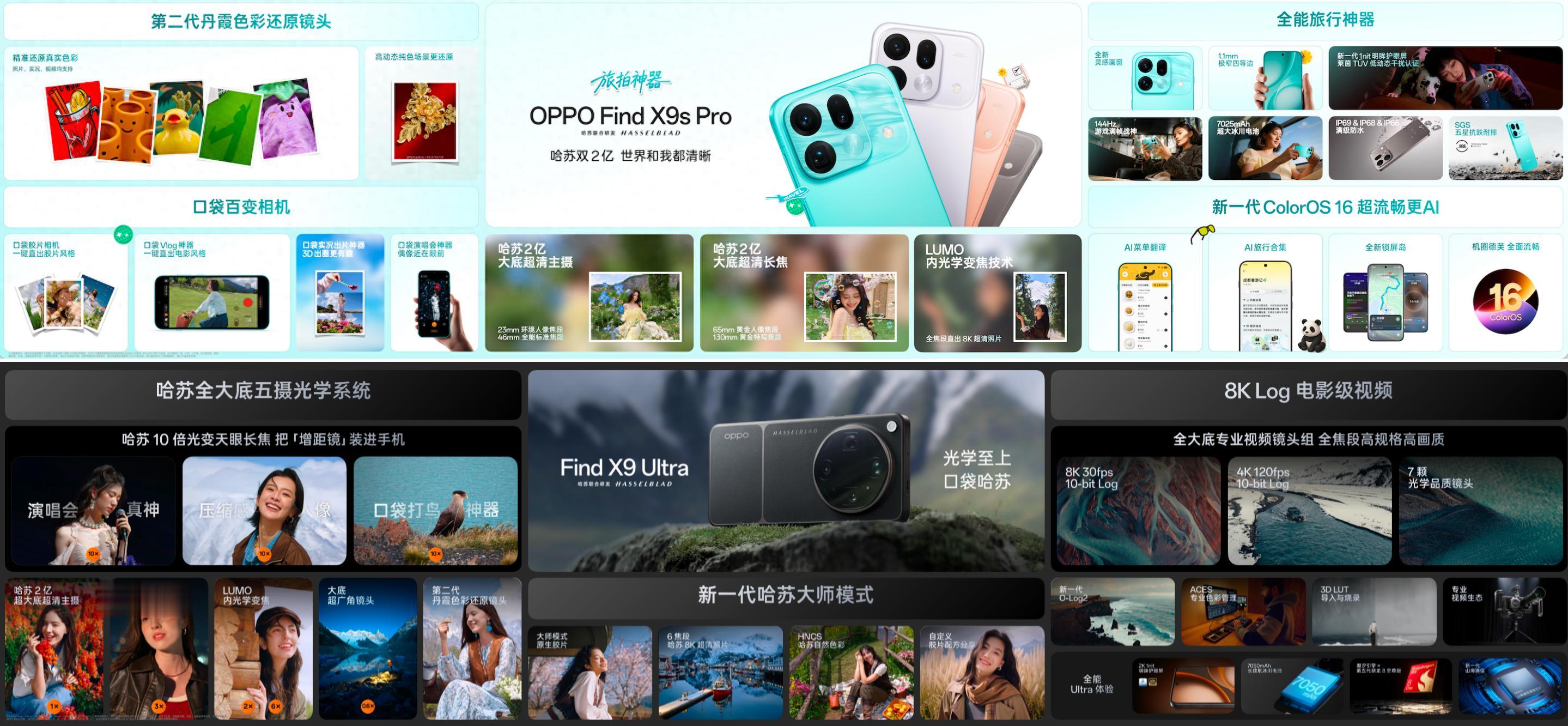 昨晚,万众期待的Find X9s Pro、Find X9 Ultra正式在成都发布。前者定位于“旅拍神器”,后者主打“专业口袋哈苏”,两款影像旗舰均搭载哈苏双2亿镜头、第二代丹霞色彩还原镜头、8K Log电影级视频和ColorOS 16,售价分别为5299元起、7499元起。