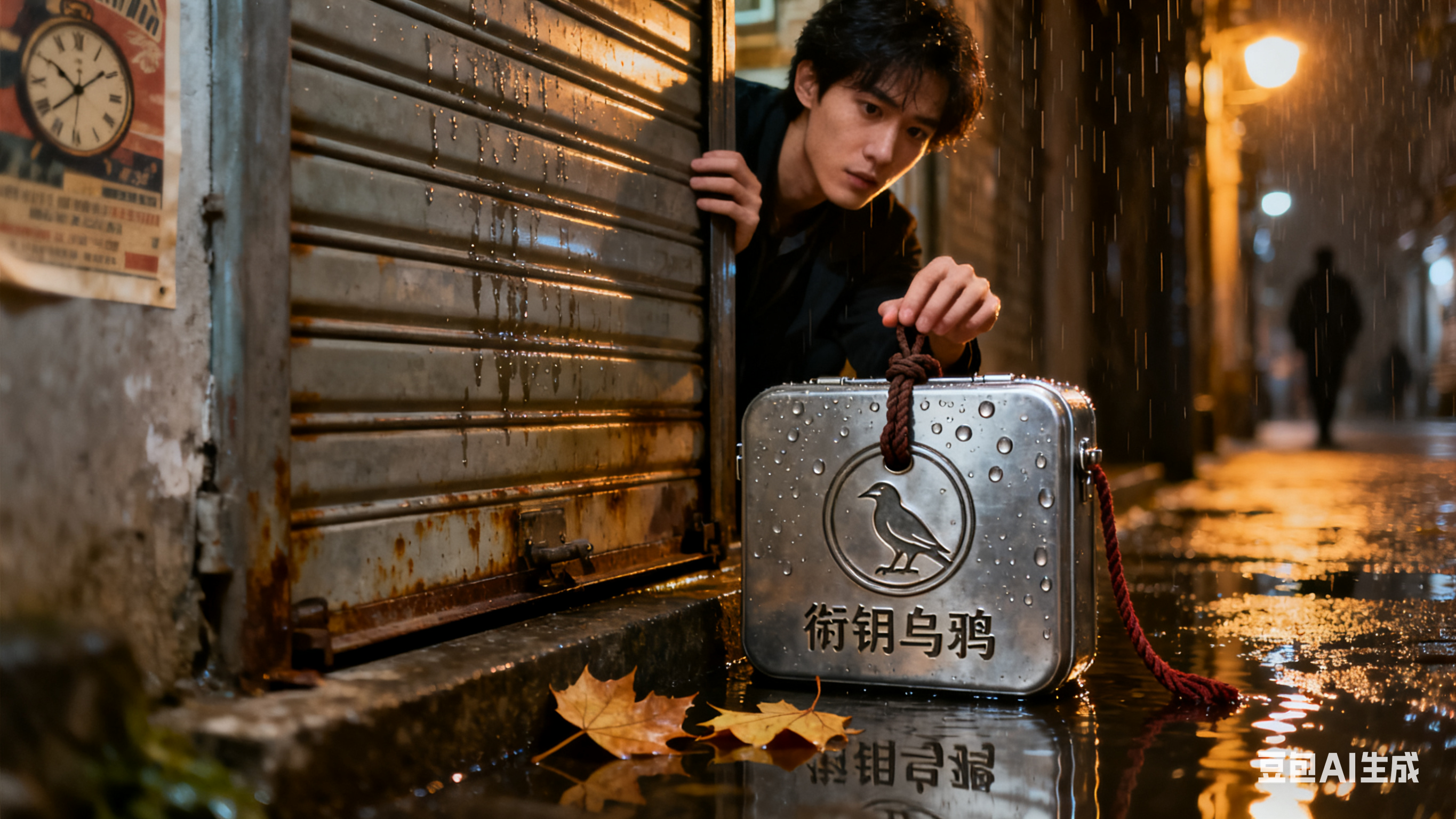 一、雨夜访客雨点砸在窗玻璃上,裂成蛛网。陈默关上钟表店的卷帘门时,发现门槛上躺着一个锡铁盒。盒面蚀刻着一只衔着钥匙的乌鸦,没有署名,只系着一根褪色的红绳。他撬开锁,里面是一叠泛黄的笔记本纸,首页用蓝黑墨水写着一行字:“你被观察了。”