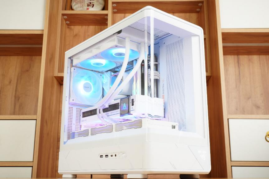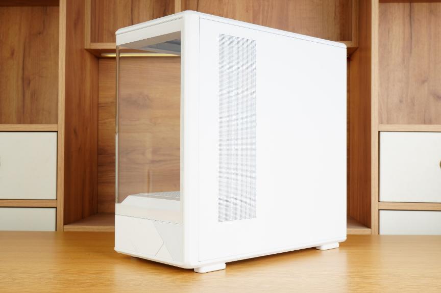 机箱侧面的视觉效果得益于曲面一体化弯折环视钢化玻璃设计在视觉效果方面相较于其他海景房也更加通透。