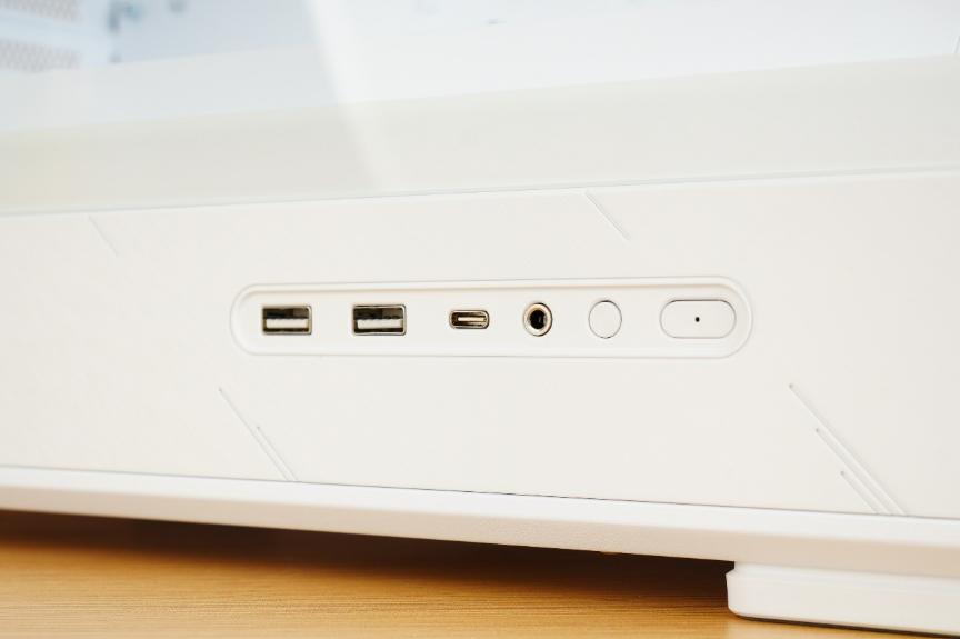 机箱的I/O口设计在了机箱顶部,接口方面标配双Type-A USB3.0、单Type-C USB3.2 Gen2以及一个二合一音频接口,接口的数量以及质量都是相当不错的。