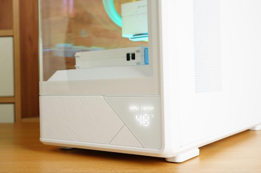 数显屏则是藏在了机箱前脸右下角的位置,也就是高亮面板的位置,可以显示CPU温度数据。