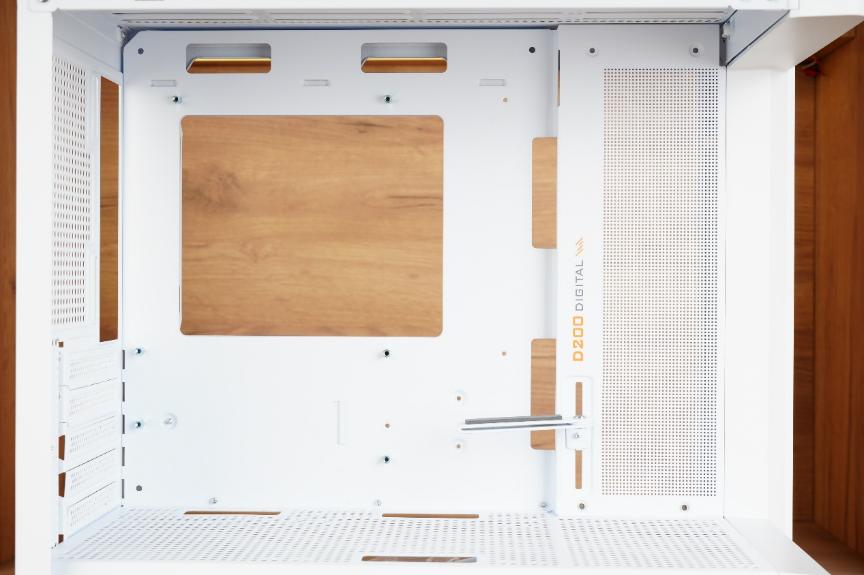 乔思伯D200内部最大支持M-ATX版型,CPU风冷散热器最高支持171mm,显卡最长可以支持到410mm,目前最新的RTX50系列显卡也可以完全放入。不过主板托架前部的MESH网面位置就补能安装风扇了。