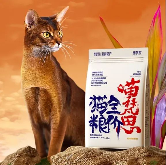 喵梵思到底属于什么档次?它在市场中的定位是中端,价格既不算高也不算低。喵梵思猫粮的营销思路,主要是在抖音平台推广,同时分享养猫经验,通过传递养宠知识来打开品牌的知名度。喵梵思旗下产品线很全,除了生产猫咪食品,也涉及一些日用品,比如除臭剂、猫砂、储量筒、猫窝、梳子之类的。旗下的猫咪食品品类同样丰富,除了主粮,还有主食冻干、主食罐头、主食酱包等。这款猫粮是膨化粮,颗粒形状为小圆饼。不同批次的猫粮颗粒,颜色会有细微的变化,主要是深浅不一样。在膨化粮的基础上,它添加了3%的鸡肉颗粒。