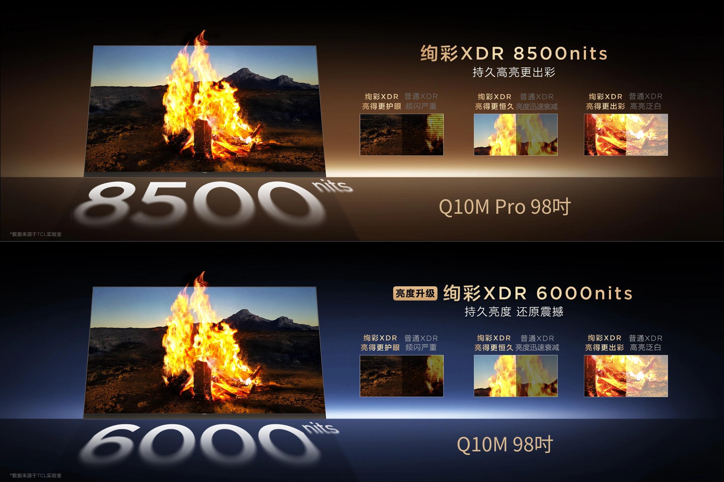 亮度方面,Q10M Pro峰值亮度达8500nits,Q10M达6000nits,均采用绚彩XDR技术,确保高峰值亮度稳定持久输出,而非转瞬即逝的实验室数据,完美还原高光场景细节。