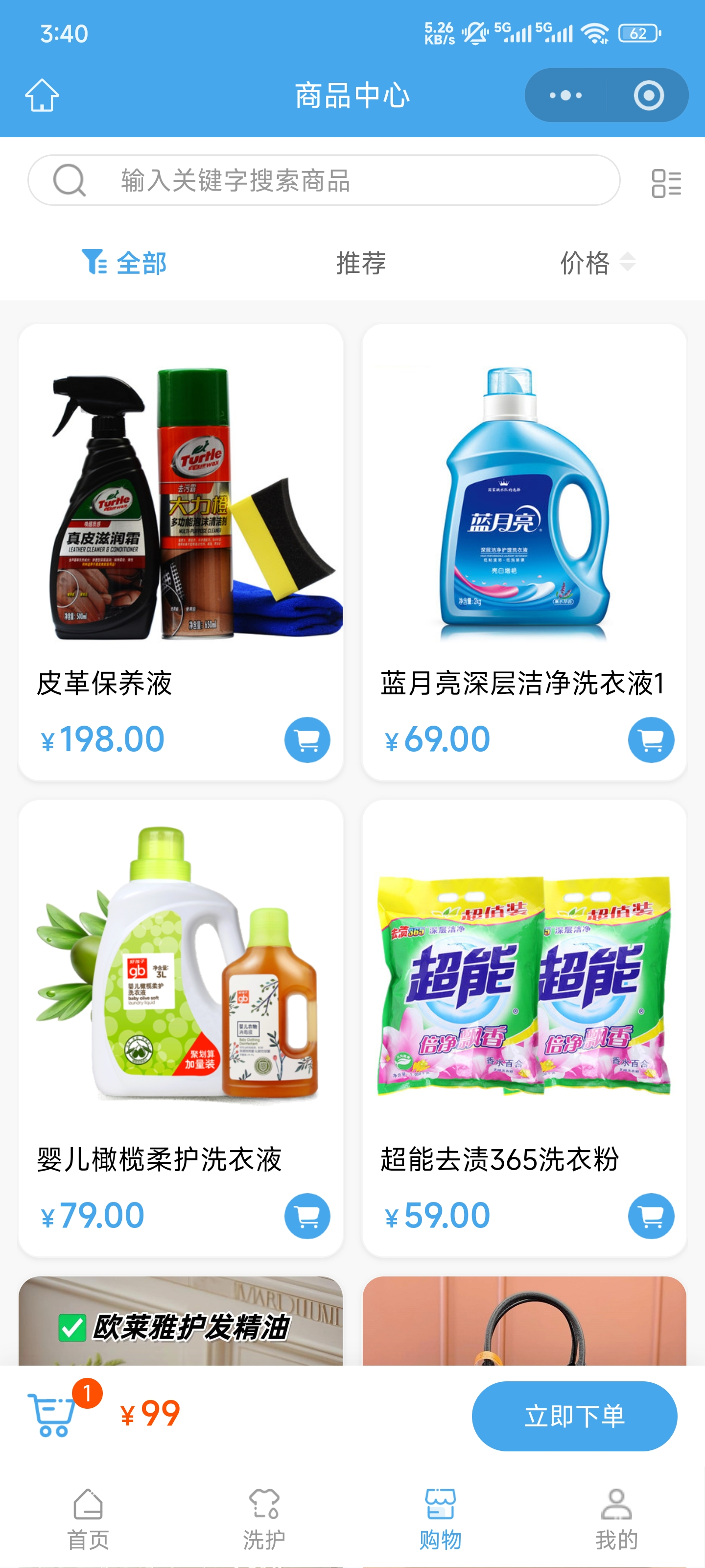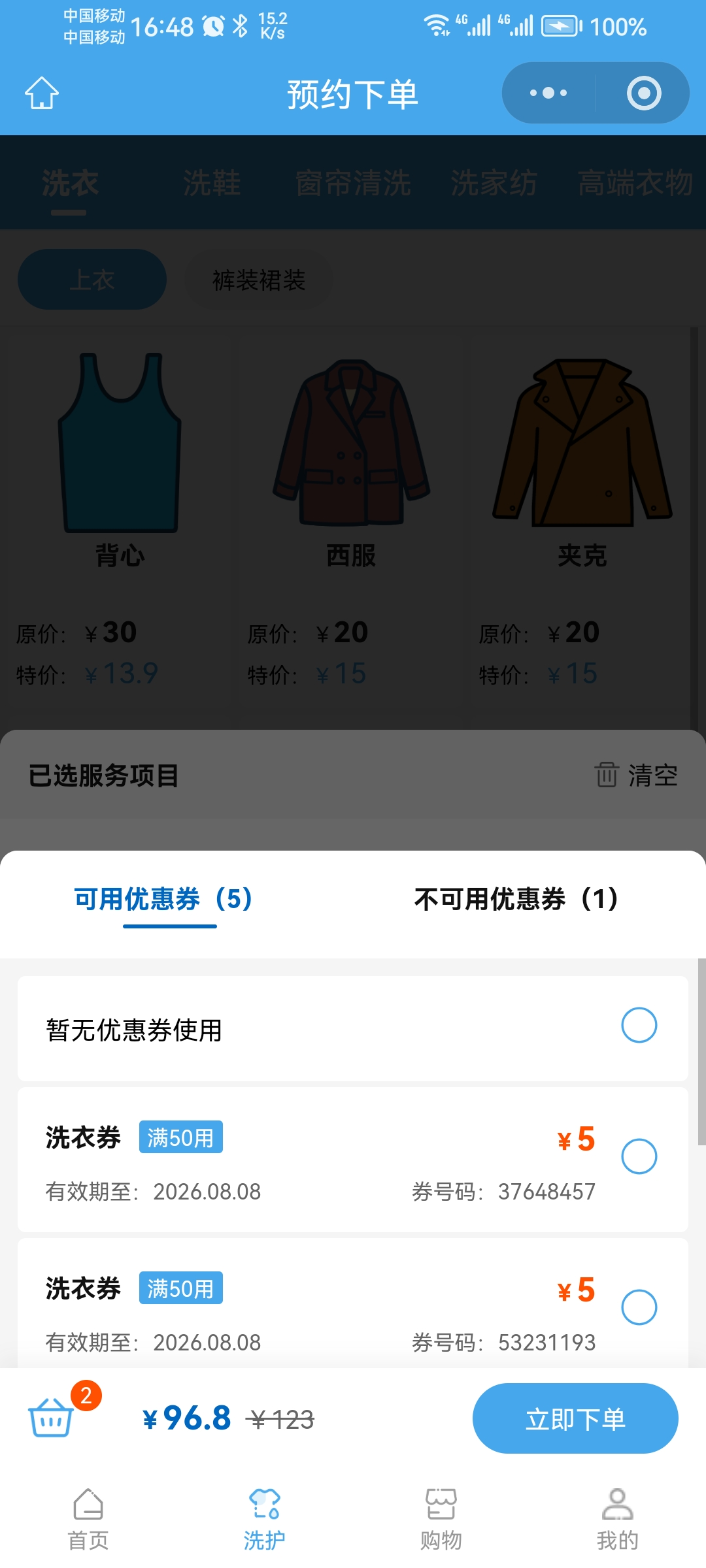 会员洗衣下单更快、更顺畅