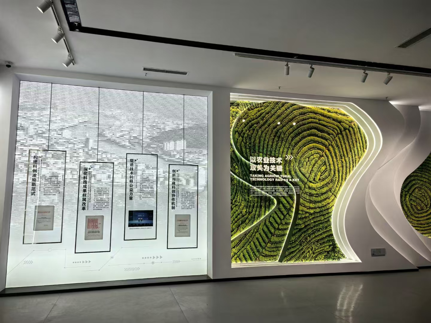 雅安现代农业产业科技创新中心展厅:通过场景还原、多媒体手段讲述雅安现代农业产业科技创新。