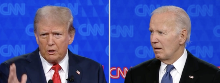 美国2024年总统选举当地时间27日21时许(北京时间28日9时许)迎来首场候选人电视辩论,拜登和特朗普这两位老熟人,就在电视辩论舞台上“狭路相逢”了。
