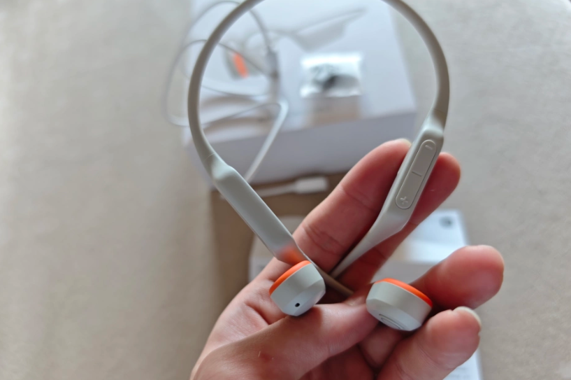 漫步者Comfo SE单耳仅6.6g重,拿在手里轻若无物,30°仿生夹角和三点支撑设计佩戴上耳特别的稳固,大幅度的晃动也能牢牢贴住,完全不用分心调整。柔韧的耳挂纤细有弹性,哪怕戴眼镜再戴也不会觉得硌耳。IP55的防尘防水,充电口还用的橡胶圈密封得很到位,晨跑出汗、雨天赶地铁时,水渍根本进不去,脏了用湿纸巾擦一擦也没问题。