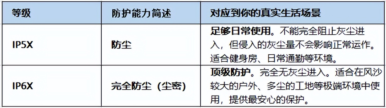 一般来说,开放式耳机的防水等级都是从IPX4、防尘是IP5X起的,所以就直接从IPX4和IP5X介绍。