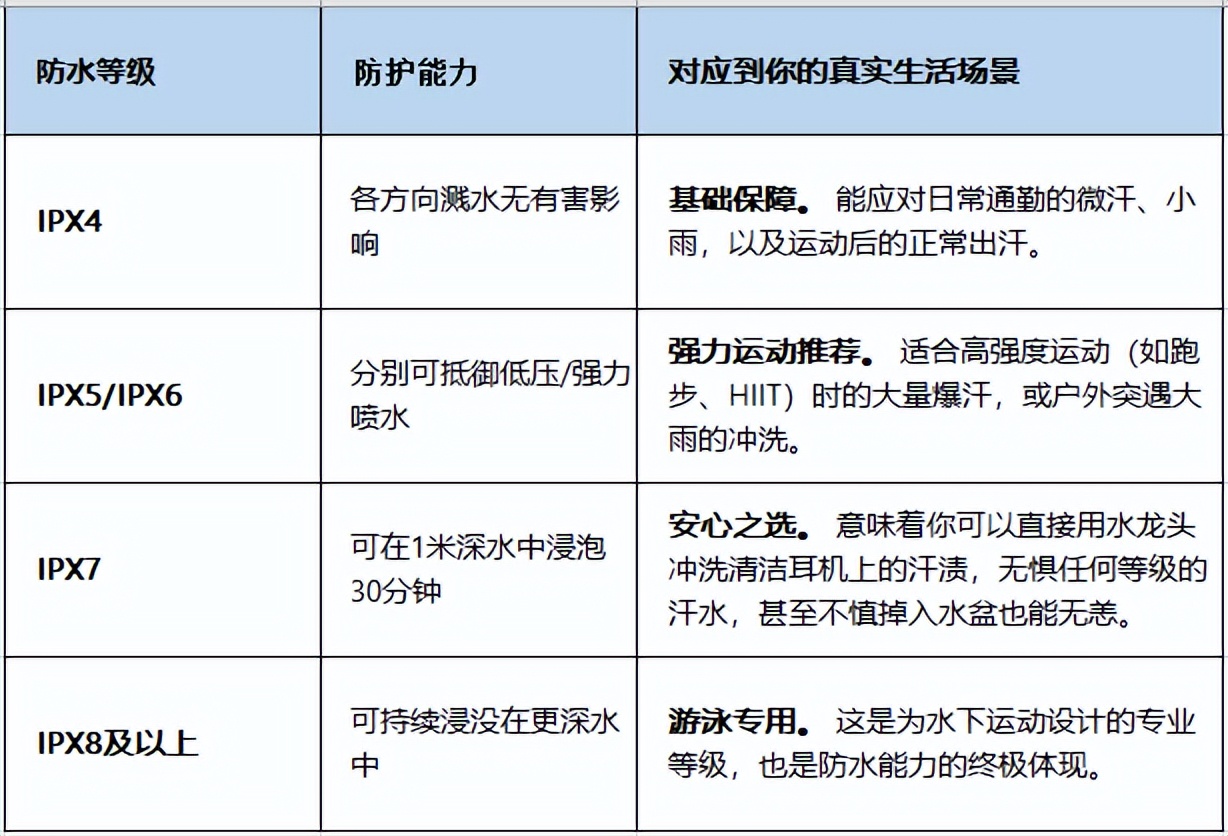 第二位数字(防水,0-9K级):这是运动耳机的命门,直接对应了对液体的防护强度。