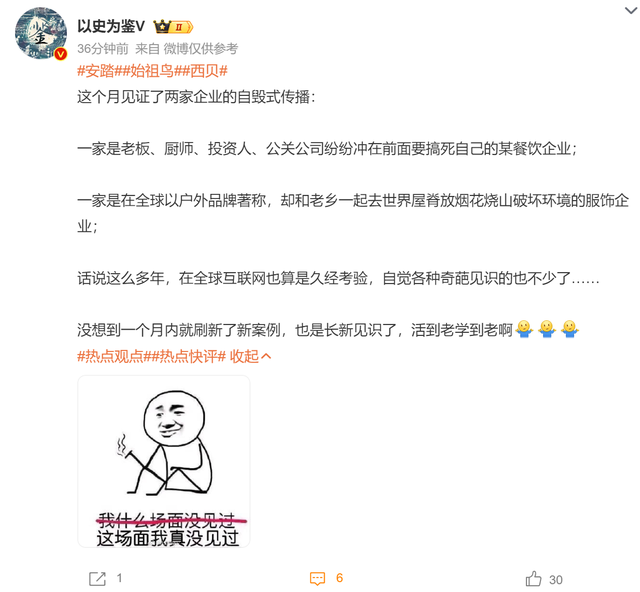 但是从这次始祖鸟的策划及公关来看,安踏的公关团队水准和西贝不相上下。