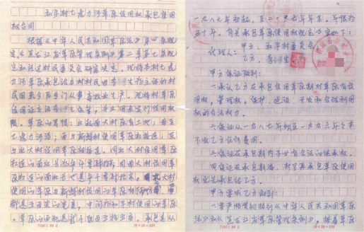 合法承包的草原 承载农户生计与家族权益事件的起因要追溯到 1974 年。当时,梨树乡主管部门根据相关文件精神,对七虎力河北岸的南大甸子草原进行统一区划分配,和平村分得 2655 亩草原,北大村分得 3188 亩草原,草原区划认定书明确了梨树乡南大甸子草原权属的历史源头。