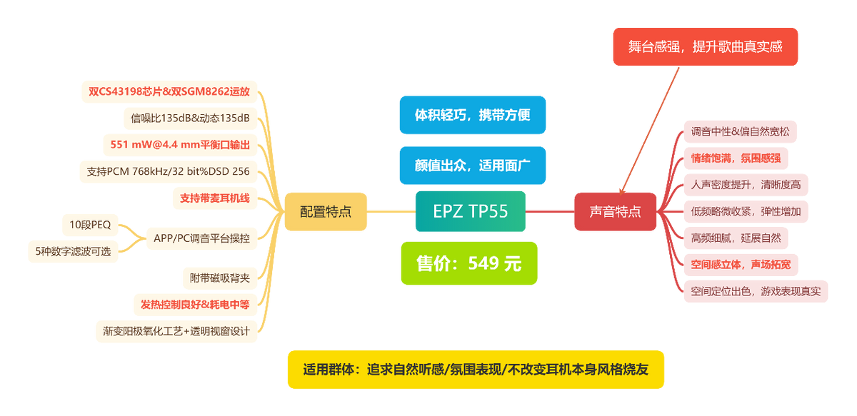 以 549 元的定价来看,TP55 的竞争力十分突出。它适合那些不想改变耳机原有调音风格,却希望让音乐更具氛围与情绪表现的烧友。对于想在日常中追求佳乐感的烧友来说,TP55 无疑是一款性价比出色、值得推荐的便携解码耳放。