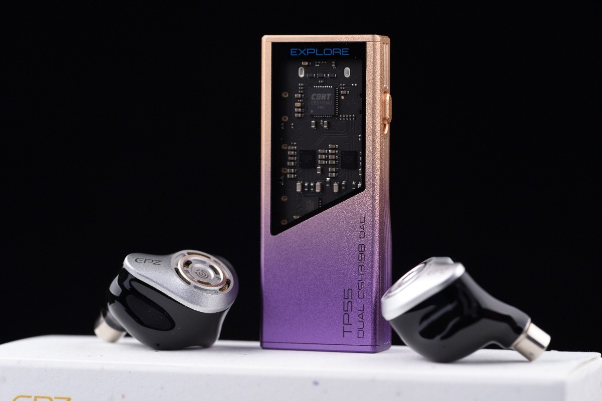 TP55 在内部配置上延续了 EPZ 的旗舰思路,核心部分采用了两颗 CS43198 解码芯片,最高支持 768 kHz/32 bit PCM 与 DSD256 原生解码,信噪比高达 135 dB,动态范围同样超过 135 dB,失真率低至 0.00014 %。在听感上,这样的底噪控制与动态余量保证了音色的纯净与层次感,也为后端放大部分留出了充足的解析空间。