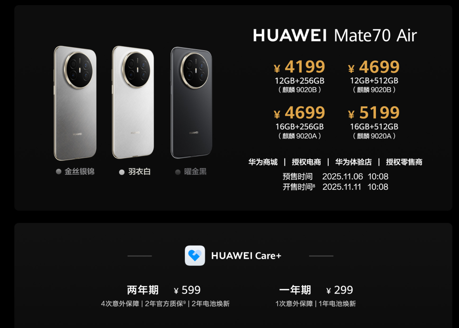 11月6日10:08,华为Mate 70 Air正式开启预售,4199元起的价格策略与6.6mm超薄机身设计,标志着华为在高端市场再次突破技术边界。