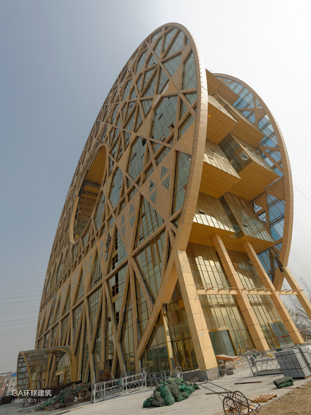 其设计出自意大利建筑师约瑟夫・迪帕斯奎尔之手,华南理工大学何镜堂院士参与联合设计。约瑟夫・迪帕斯奎尔曾解释,灵感源于中国传统玉璧,与水中倒影相映成“双环玉璧”之态,外形也暗合吉祥数字“8”,意在打造具有东方文化内涵的地标,而非西式摩天大楼的复制品。