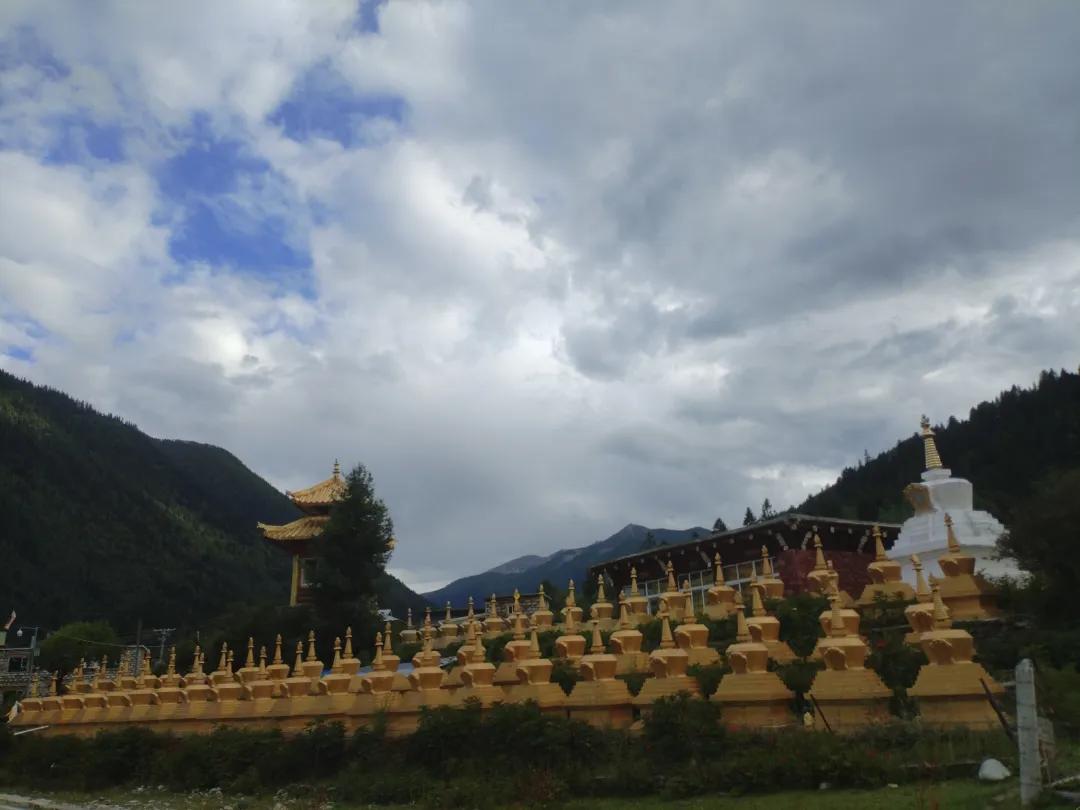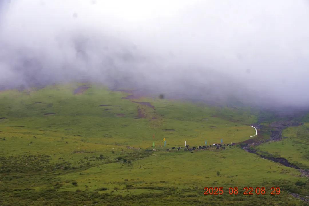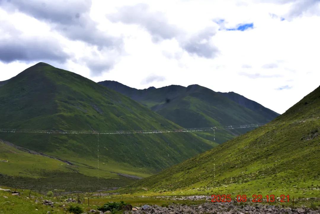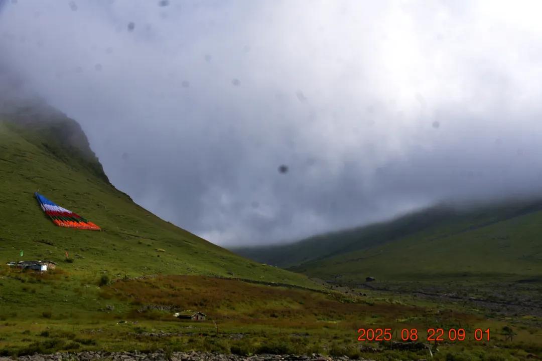沟中间拉了一条长约五六十米的经幡,早上过来我们还以为是吊桥呢,