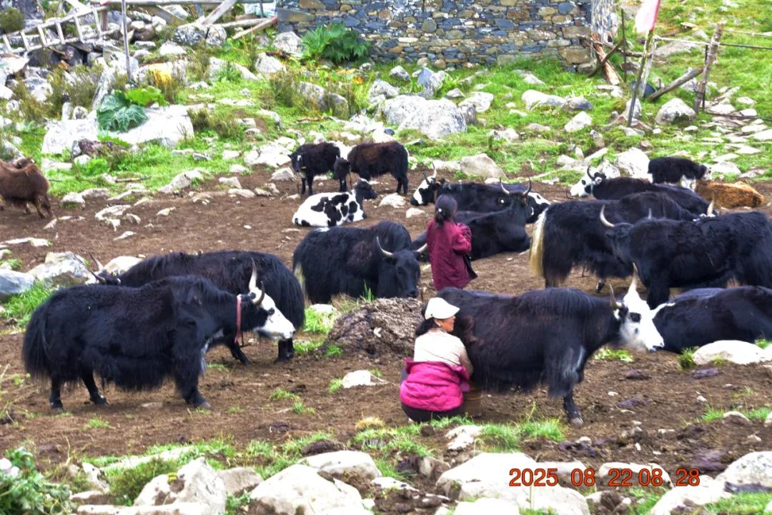 路过一片牧场,看到牧民给牛挤奶,