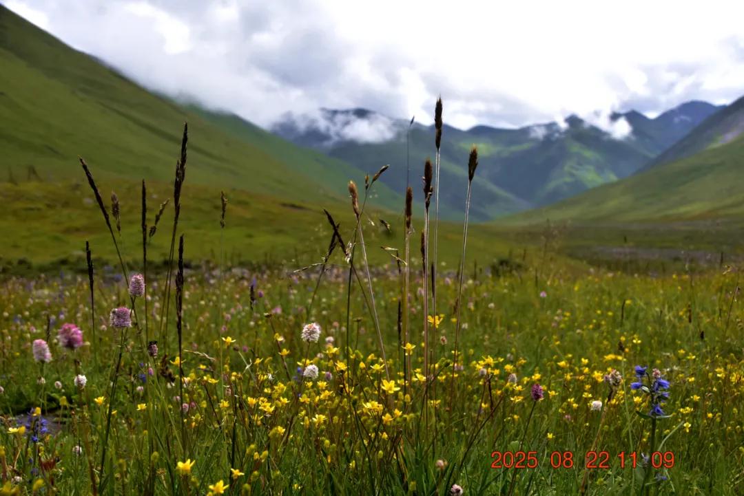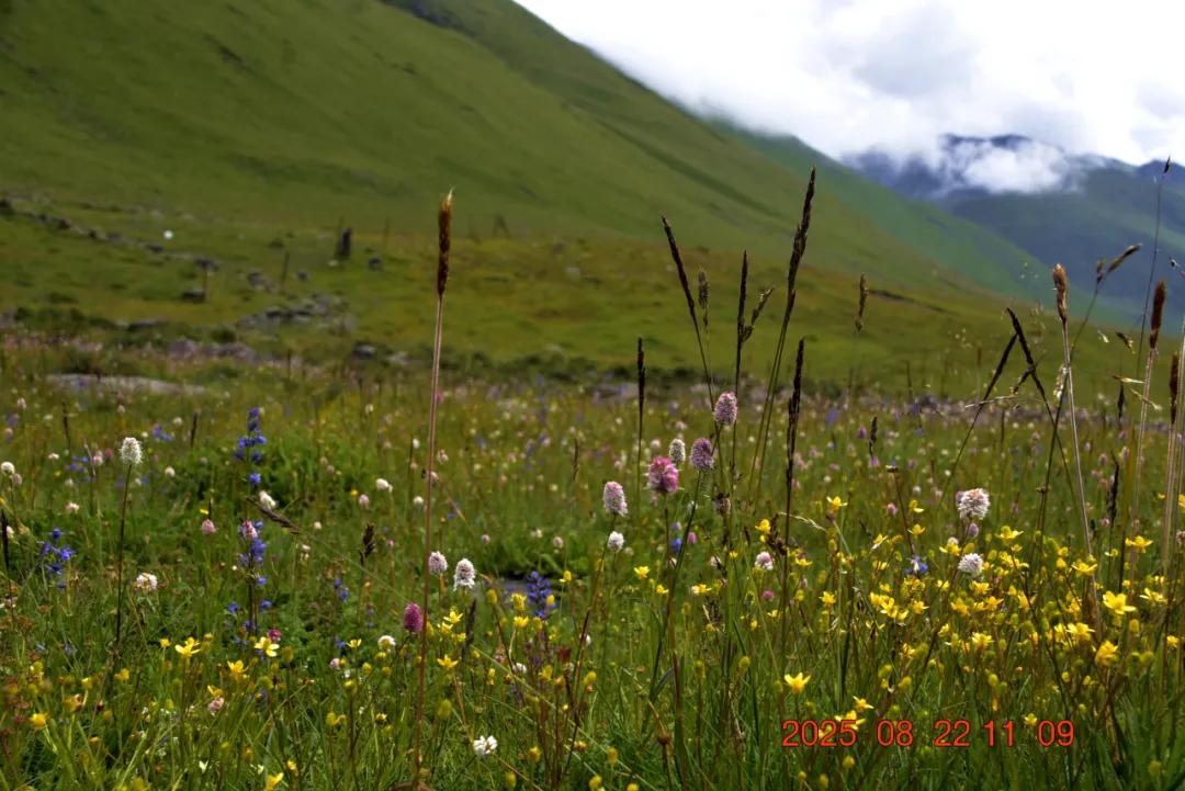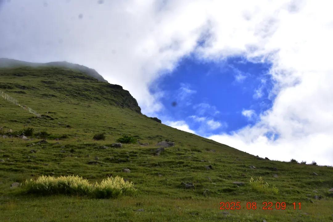 今天时间充足,我本想丰爬上这个山坡看看上面的海子,走了一半又放弃了。高海拨徒步还是挺吃力的,不能着急,不能让大家等我一个人,返回罢。
