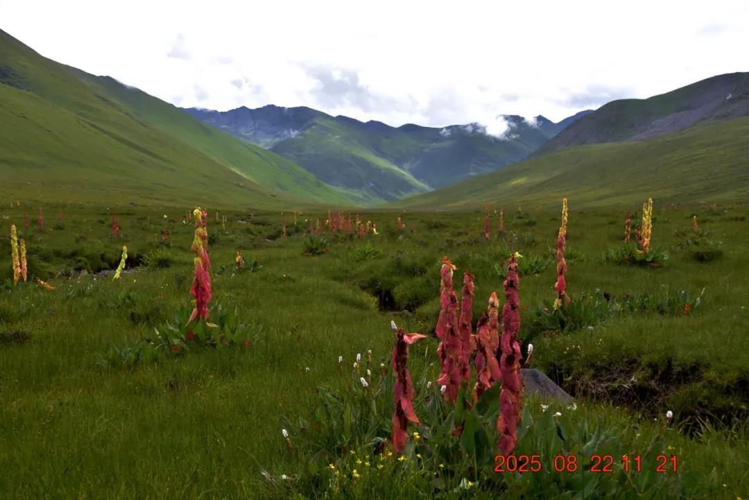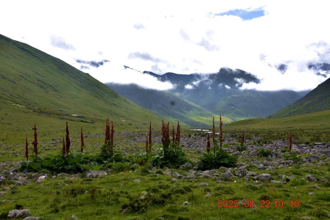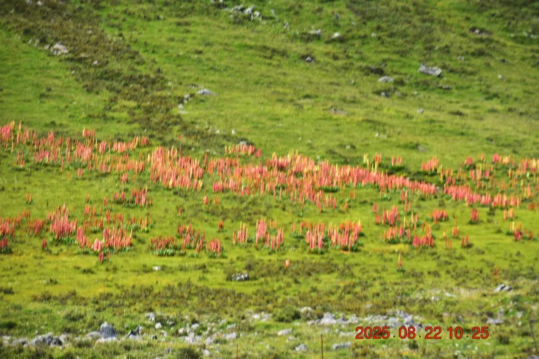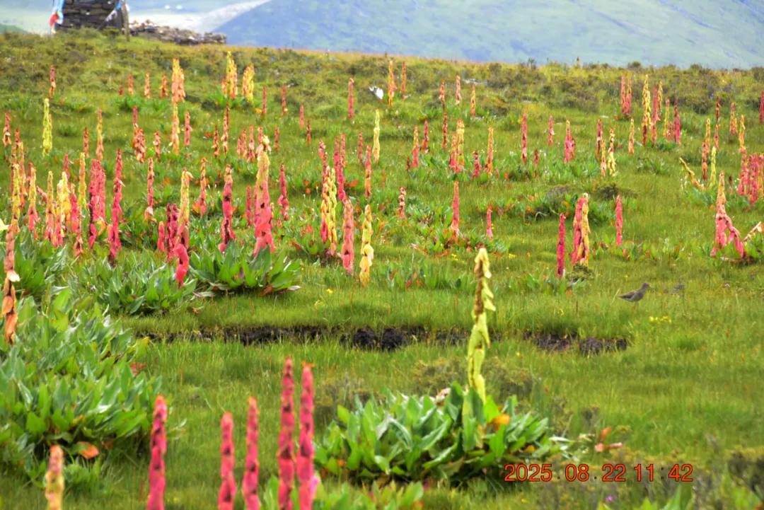 这就是我看的红红的,苞叶大黄,我还以为是塔黄什么的,生长于海拔3000-4500米的山坡潮湿草地或溪流旁,其根含大黄素、大黄酚等蒽醌类成分及鞣质,具有清热解毒、泻下、化瘀、止血等功效,主治湿热黄疸、热结便秘等症,苞片形成温室结构,可抵御高山低温强紫外线环境,与塔黄同属我国大黄属塔黄组仅有的两个物种