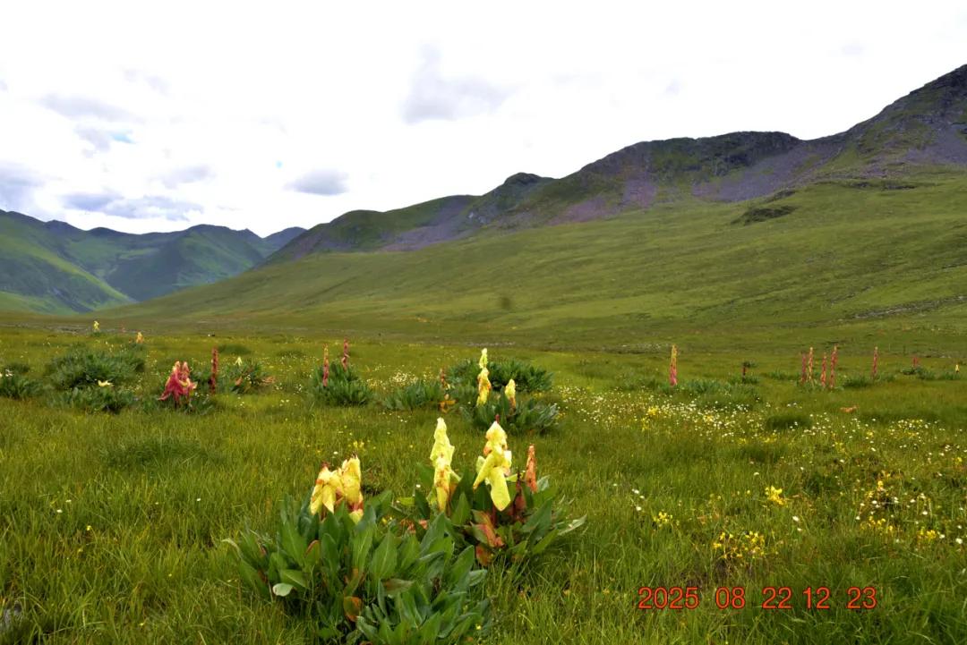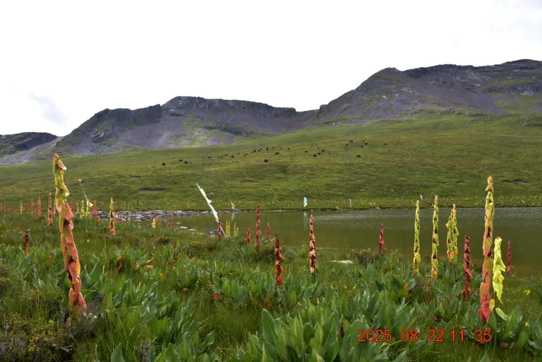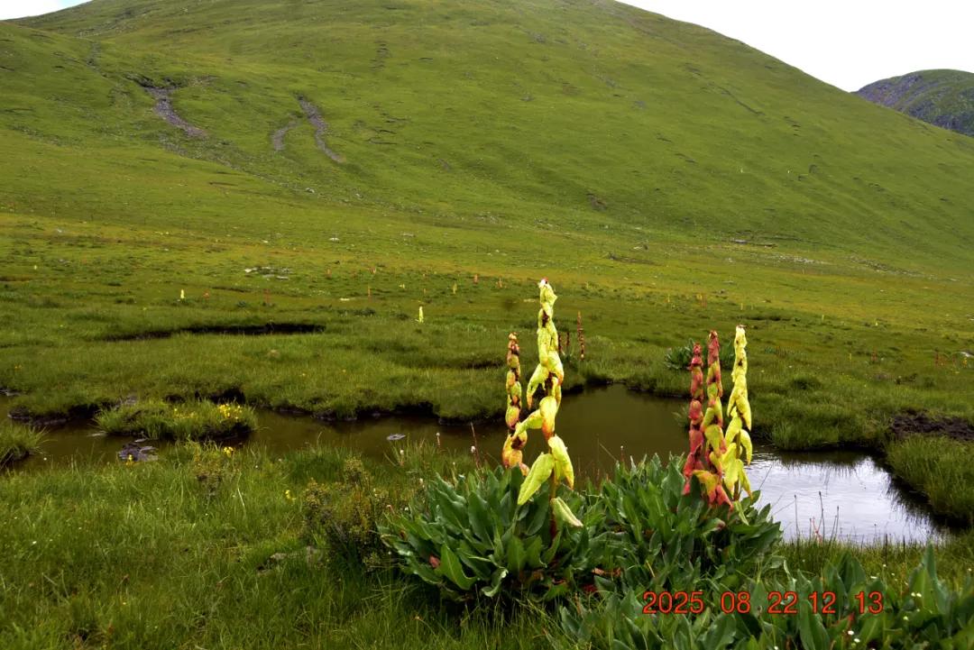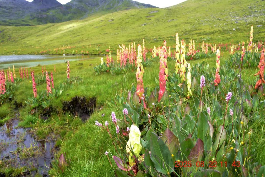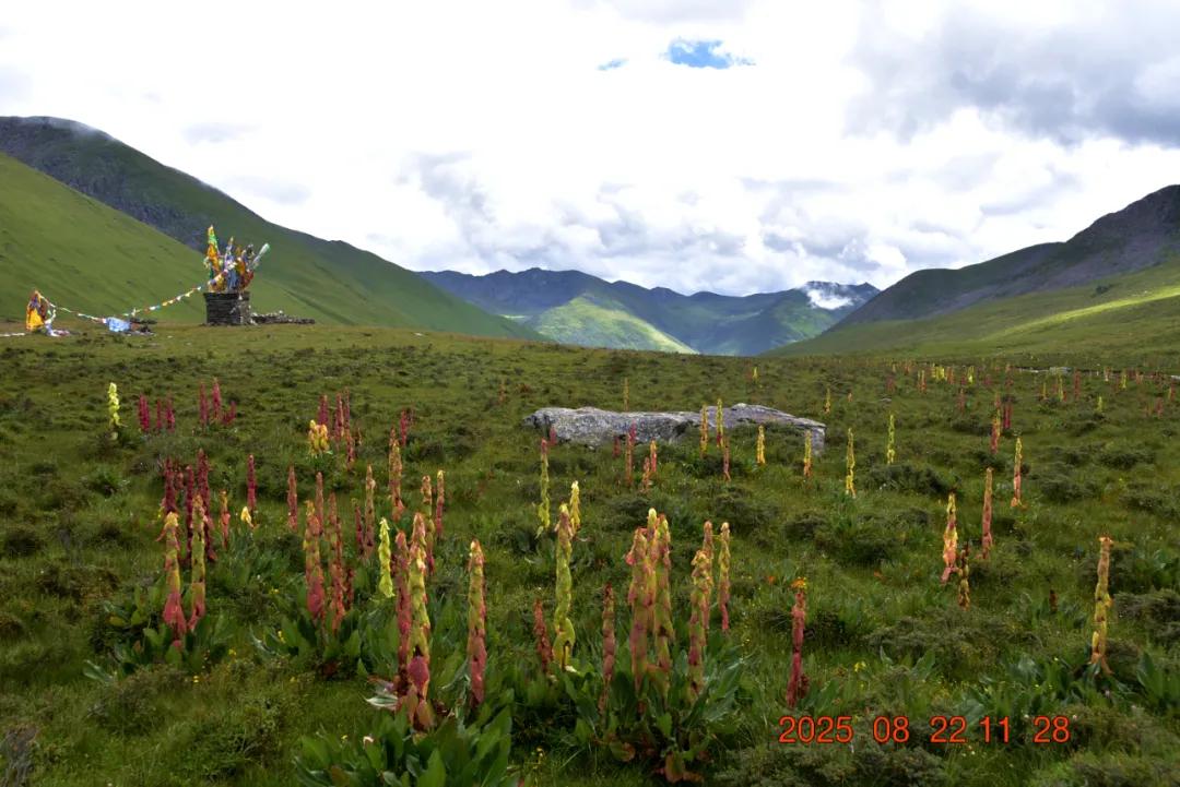 这就是我看的红红的,苞叶大黄,我还以为是塔黄什么的,生长于海拔3000-4500米的山坡潮湿草地或溪流旁,其根含大黄素、大黄酚等蒽醌类成分及鞣质,具有清热解毒、泻下、化瘀、止血等功效,主治湿热黄疸、热结便秘等症,苞片形成温室结构,可抵御高山低温强紫外线环境,与塔黄同属我国大黄属塔黄组仅有的两个物种