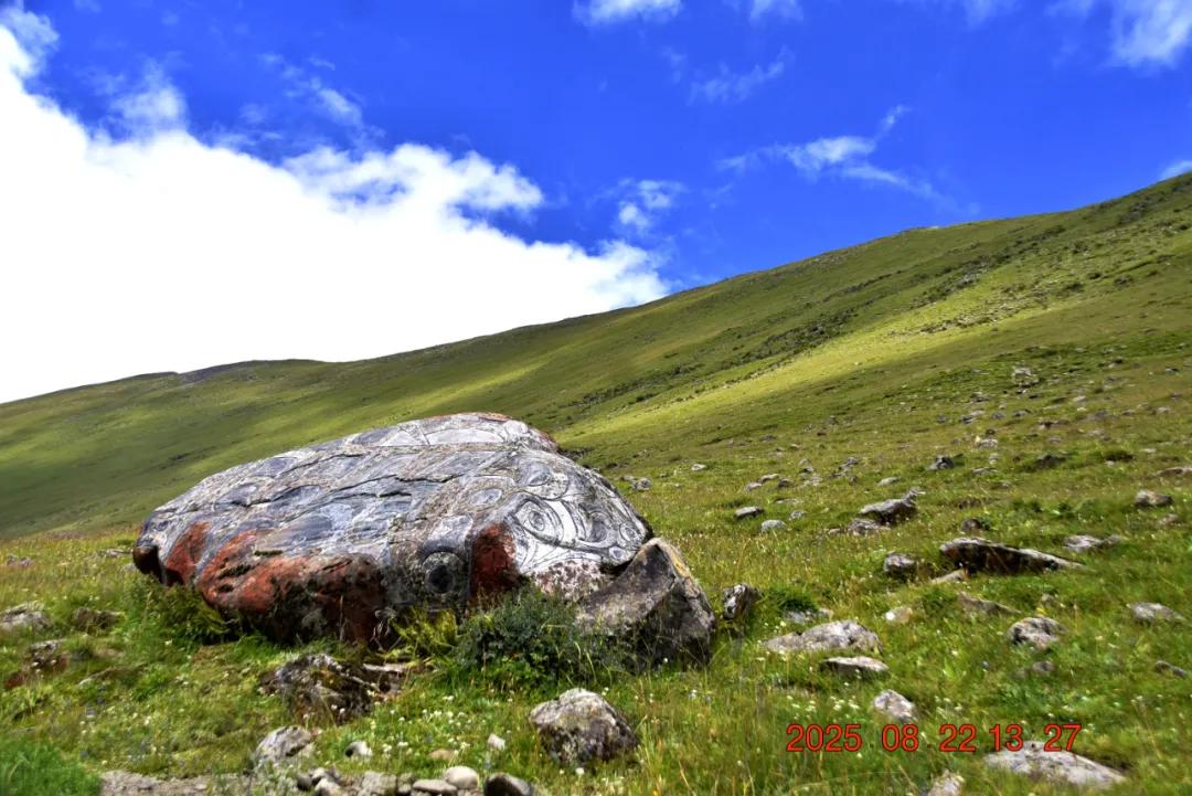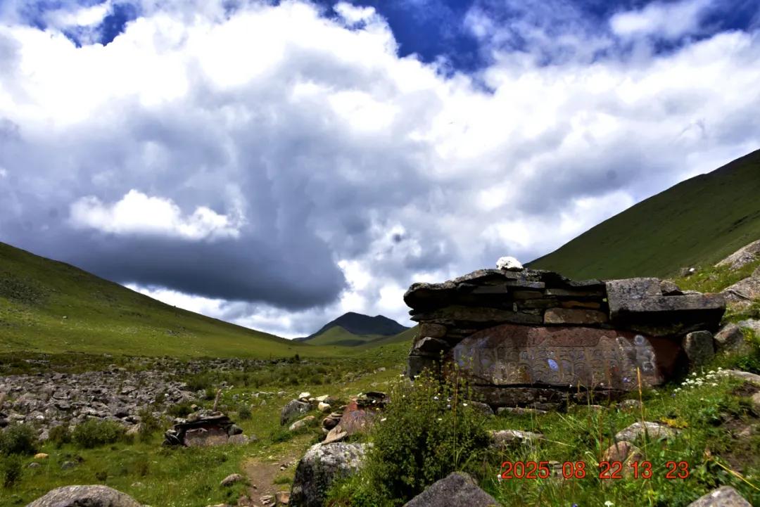 路上有玛尼石,就是上面刻着是藏族文化中刻有宗教符号或图案的特殊石头,承载着祈福、驱邪、路标等多重意义,是藏族传统民间艺术与信仰的结晶。“玛尼”来自梵文佛经《六字真言经》“唵嘛呢叭咪哞”的简称,