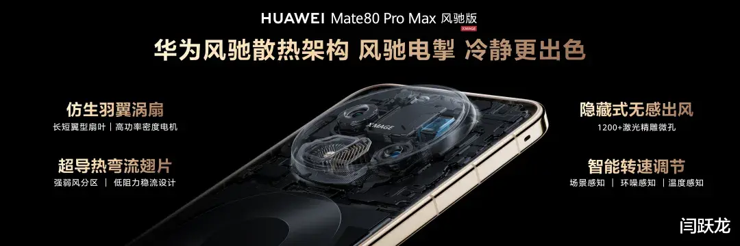 其一,是从被动散热到主动式散热系统的革命。过往手机散热大多靠散热片等做被动传导,难以解决高负载热量堆积问题。华为Mate 80 Pro Max 风驰版打造“物理创新+AI算法智能”主动式散热系统,物理端以首创的仿生羽翼涡扇、超导热弯流翅片以及隐藏式无感出风实现风量、散热面积双提升,气流疏导更高效;算法端通过热流噪AI智能优化算法,实时匹配散热效率与性能输出,软硬协同让高性能实现持久、冷静、安静的流畅体验。一硬一软的协同,将狂暴的性能驯服为持久、冷静、安静的流畅体验。