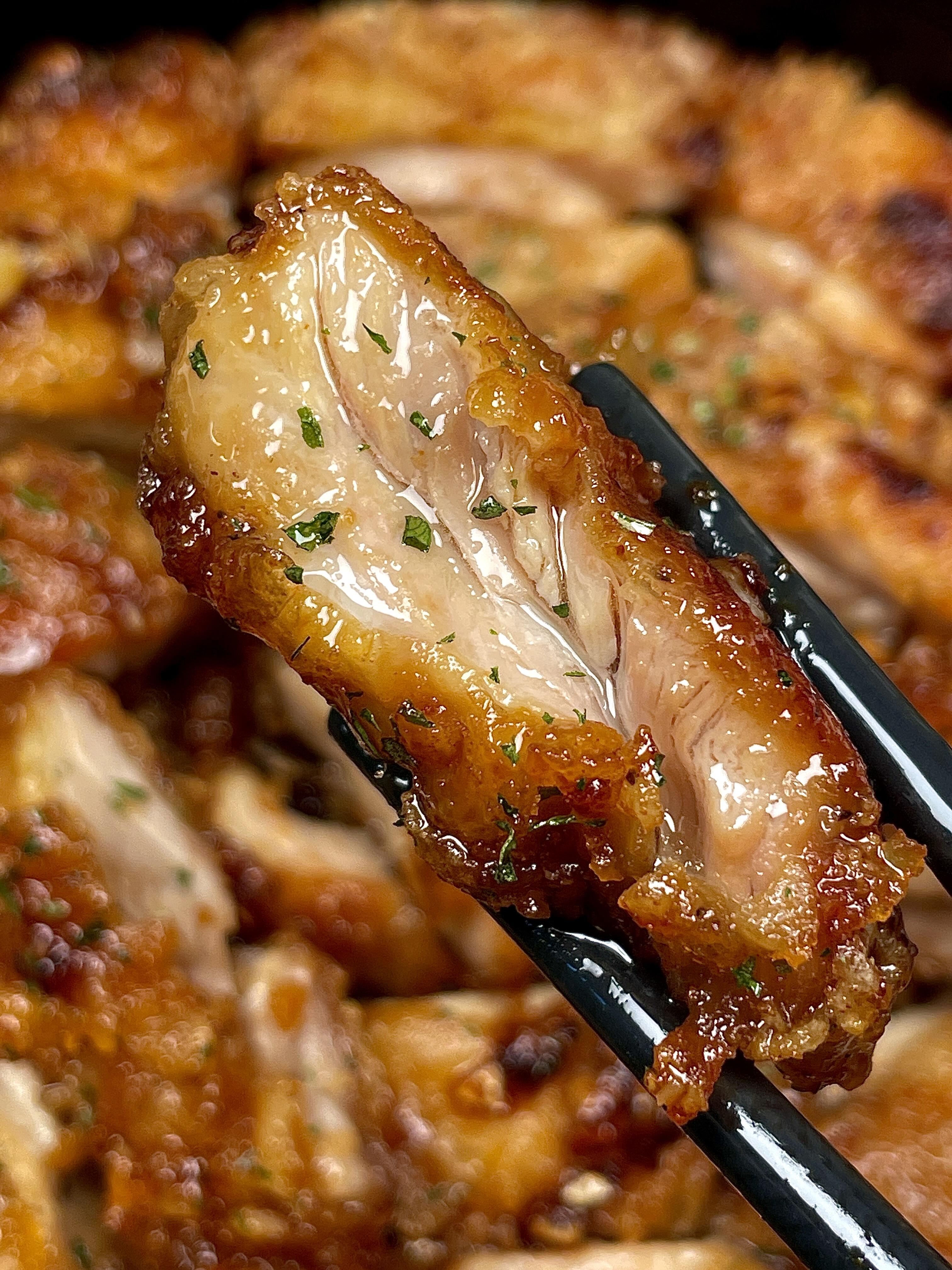 最后把调好的蜂蜜酱汁倒进去,开小火快速翻炒均匀,让每块鸡排都裹上酱汁,关火就能出锅。刚煎好的鸡排外皮金黄酥脆,用筷子一戳“咔嚓”响,咬一口,里面的鸡肉嫩到爆汁,甜咸交织的蜂蜜黄油味在嘴里散开,完全不腻,配米饭我能直接炫两碗!