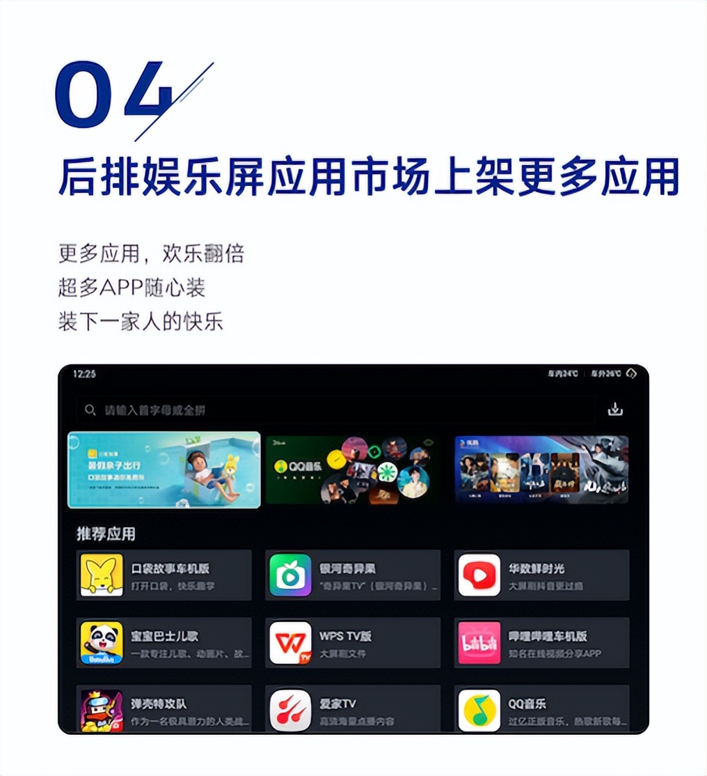 腾势N9不仅是驾驶者的智能伙伴,更是全家人的移动娱乐中心。此次OTA,后排娱乐屏应用市场上架更多应用,包括哔哩哔哩车机版、芒果TV、优酷车机版、腾讯视频、网易云音乐车机版、悟空识字等热门APP随心装,满足全家人多样化的娱乐需求。