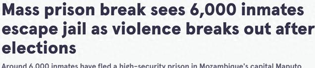 今年的圣诞节,对莫桑比克来说成了一场噩梦。首都马普托的一所最高安全级别监狱发生大规模越狱事件,至少6000名囚犯趁乱逃脱,其中包括29名被定罪的恐怖分子。
