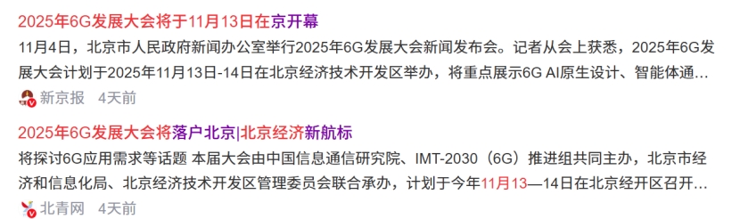 2025年6G发展大会将于11月13日-14日在北京经济技术开发区举办,大会主题为“智联全球,共建6G技术创新生态”。2025年是6G标准化研究全面启动之年,6G发展正处于技术创新加速演进、产业方向愈发清晰的关键阶段。大会将重点展示6G AI原生设计、智能体通信等最新研究成果。