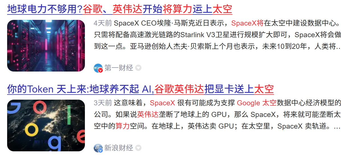 事件4:太空算力—谷歌英伟达SpaceX将建太空算力 算力新一轮炒作