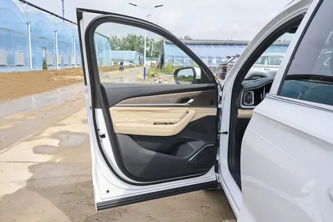 内饰用料:中控台、门板大面积采用软质皮革包裹,搭配麂皮绒顶棚,触感细腻。