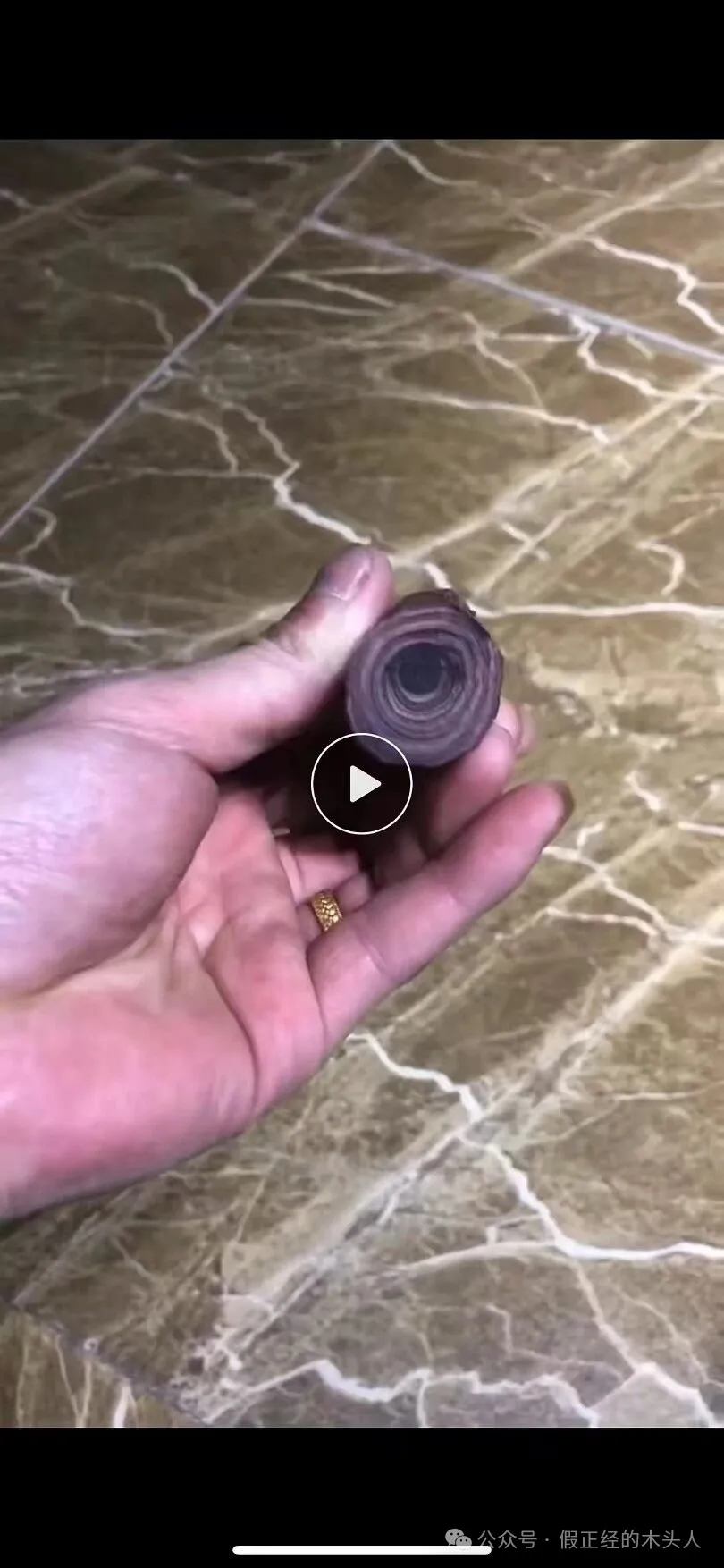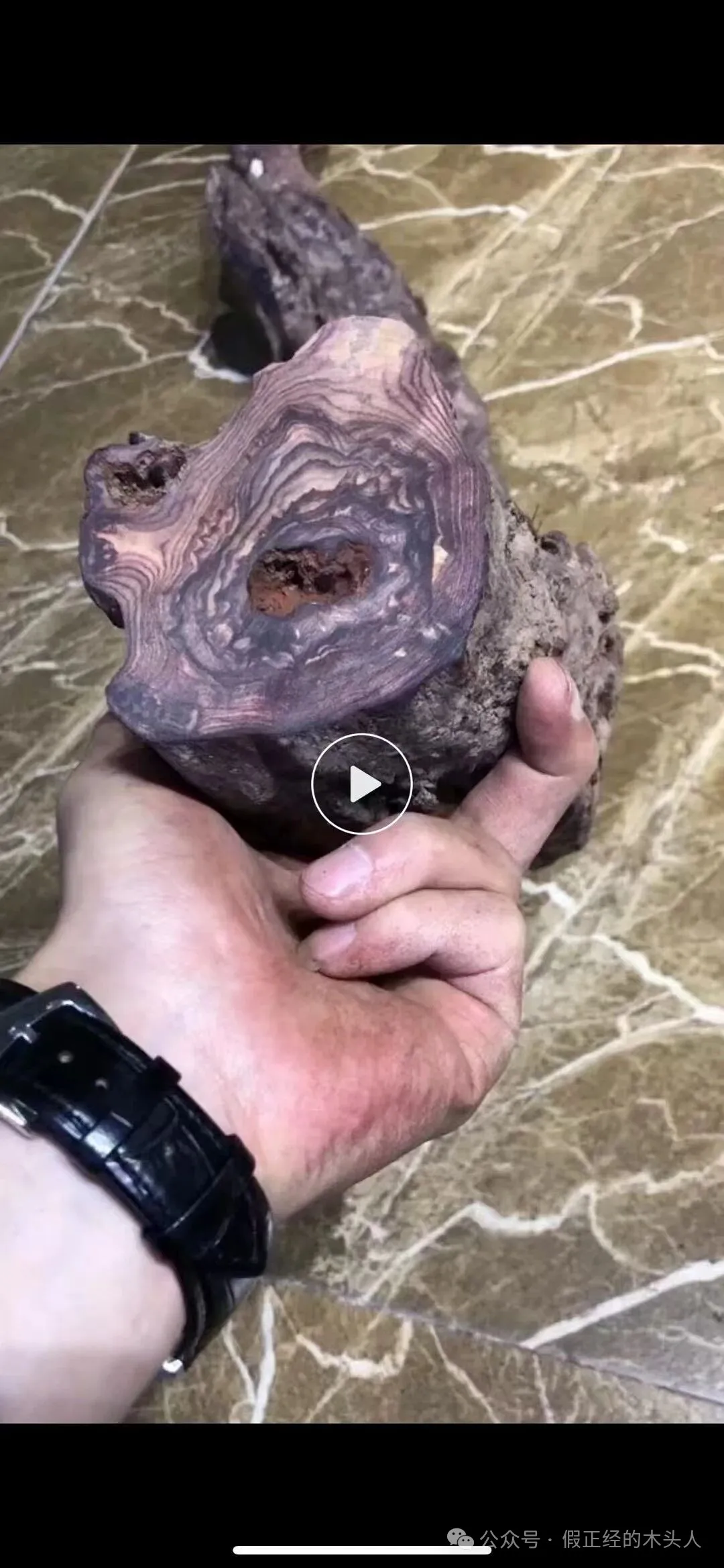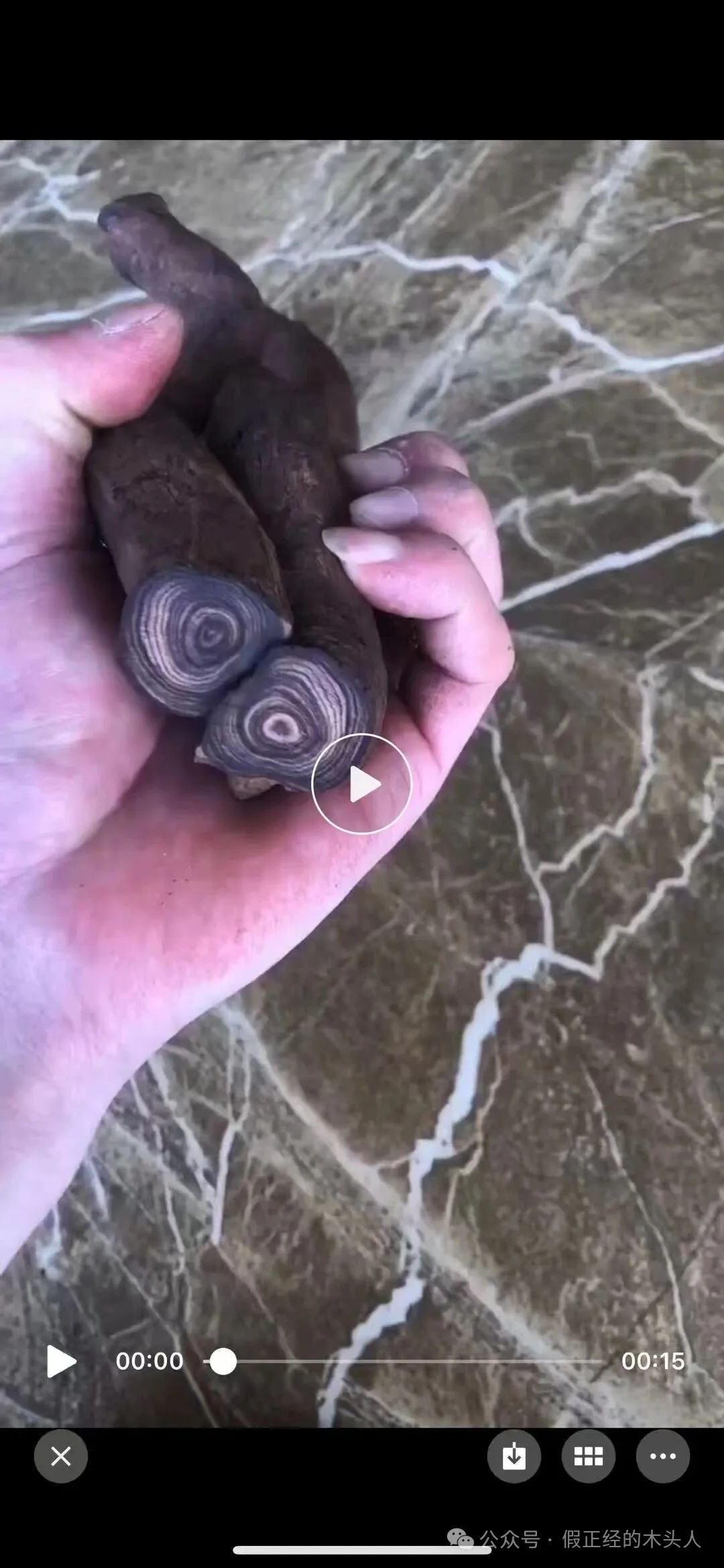 问题在其纹理走势上:就算是瘤疤钉瘤疤花这类特殊纹理,在瘤疤本体之外的顺纹,也必然会表达出木本类植物纹理圈圈套叠的特性,不存在圈不是圈,圆不是圆,纹理乱长,全然无规律的表达。