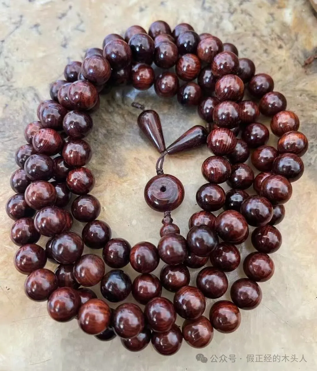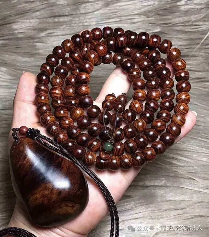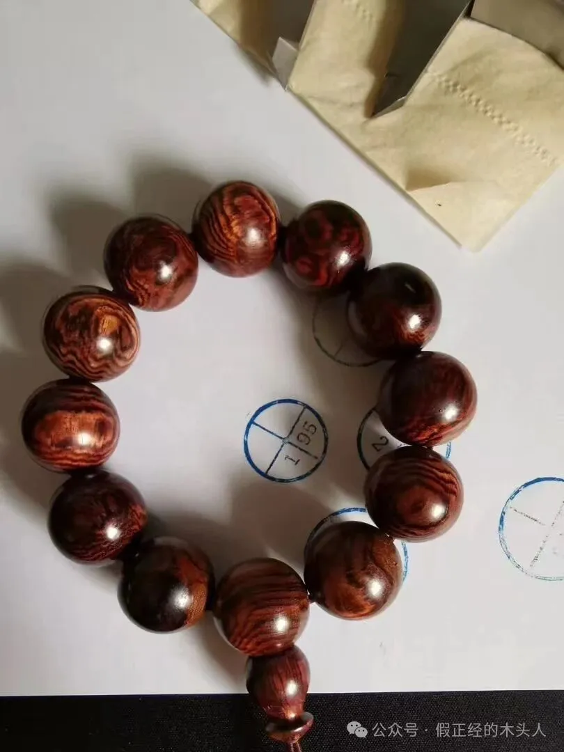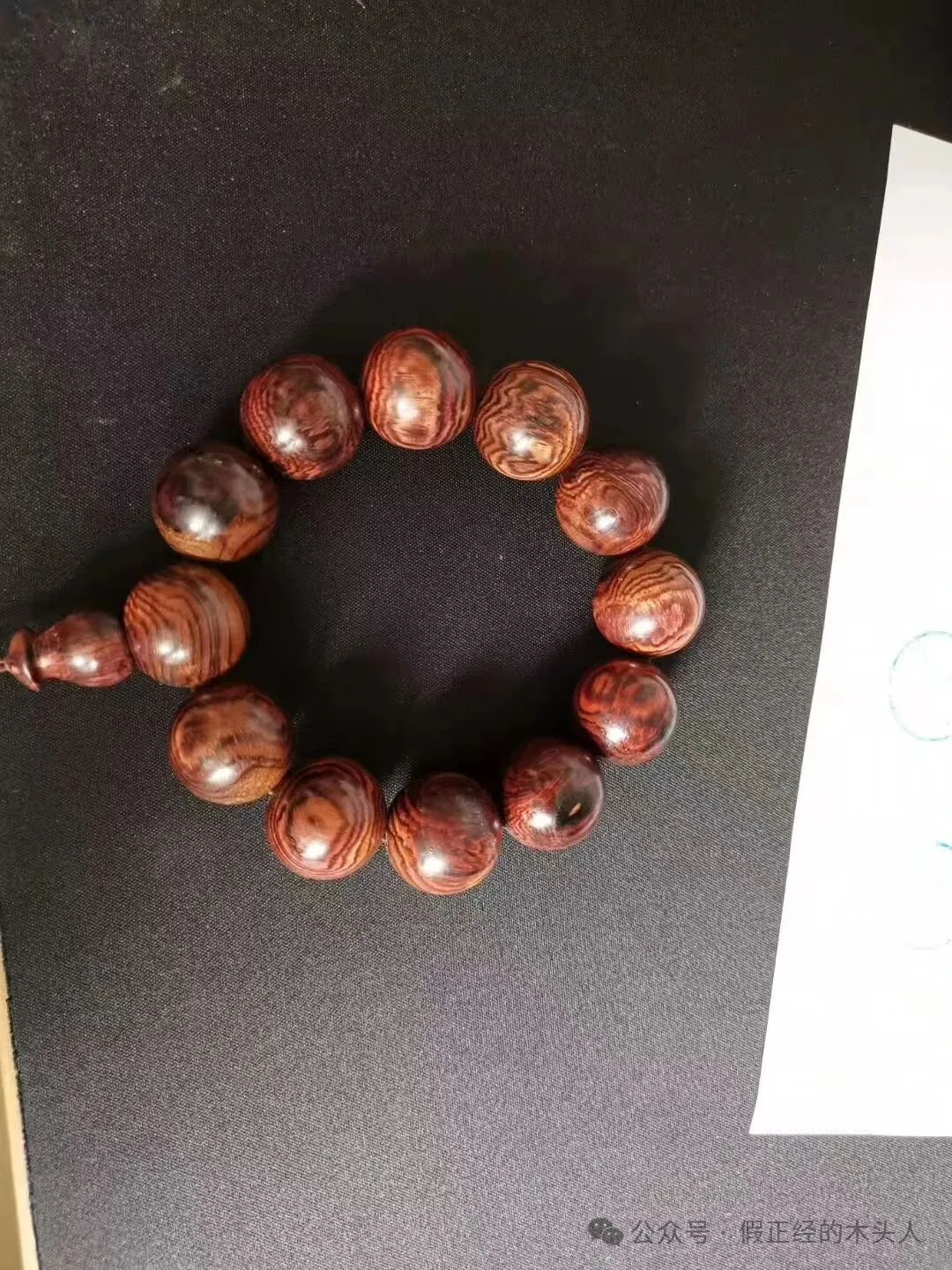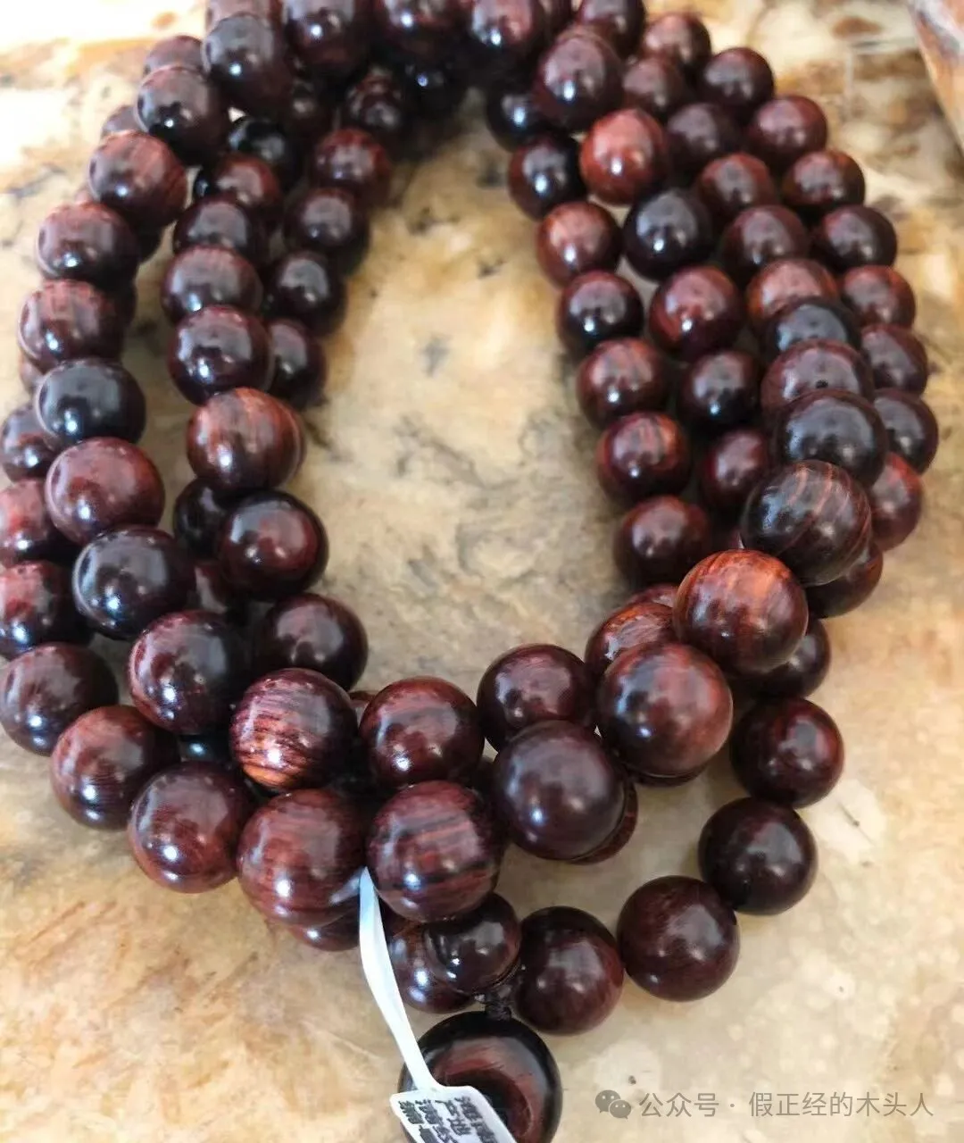 仔细观察,其每颗珠子纹理走势都不同,竖的、横的、斜的,胡乱交叉,无法做到“珠子纹理都朝同一方向展示”,整体观感凌乱。