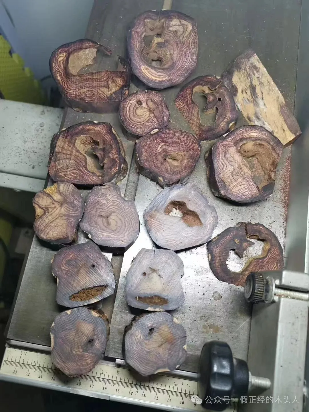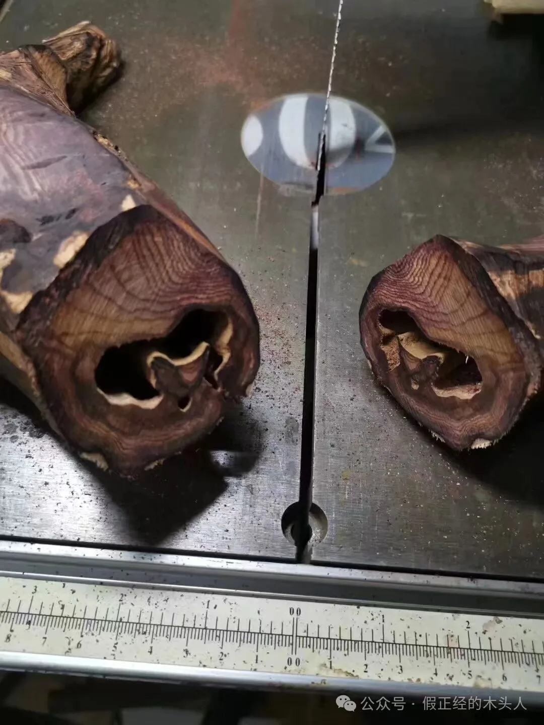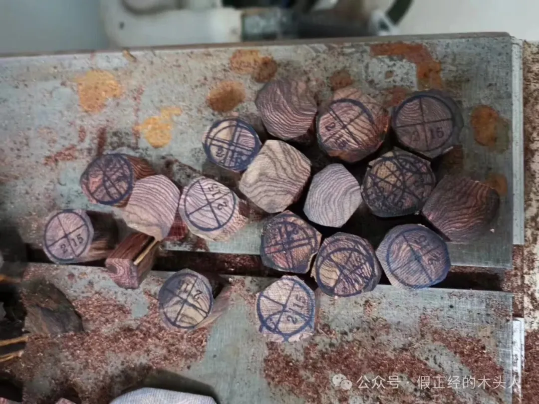 究其原因,就是材料本体非木本类,因为没有规整的年轮纹,只能在歪七八扭的纹理中挑出看着比较像顺纹的地方取,做到规整难度较大。
