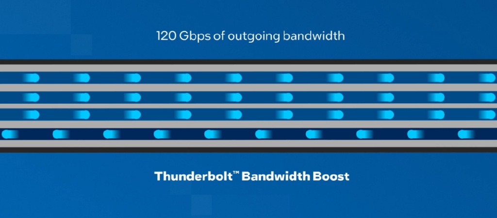 虽然雷电5和USB4 v2的双向传输带宽均为80Gbps,但雷电5在此基础上还强制性搭载了Bandwidth Boost动态带宽加速功能,它能够实时监测数据传输的类型与需求,当用户外接多个高分辨率显示器时,雷电5 可以迅速将带宽资源优先分配给上行信号传输,这一模式可以为雷电5带来120Gbps的上行带宽,并将下行带宽压缩至40Gbps,确保显示信号的流畅输出。尽管USB4 v2也将非对称传输这一特性作为可选项进行了支持,但没有作为认证标准强制厂商搭载此功能,因此普及程度较低。