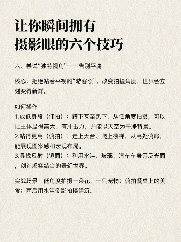 “摄影眼” 靠练!下次出门用这6招,10张必有1张惊艳朋友圈~